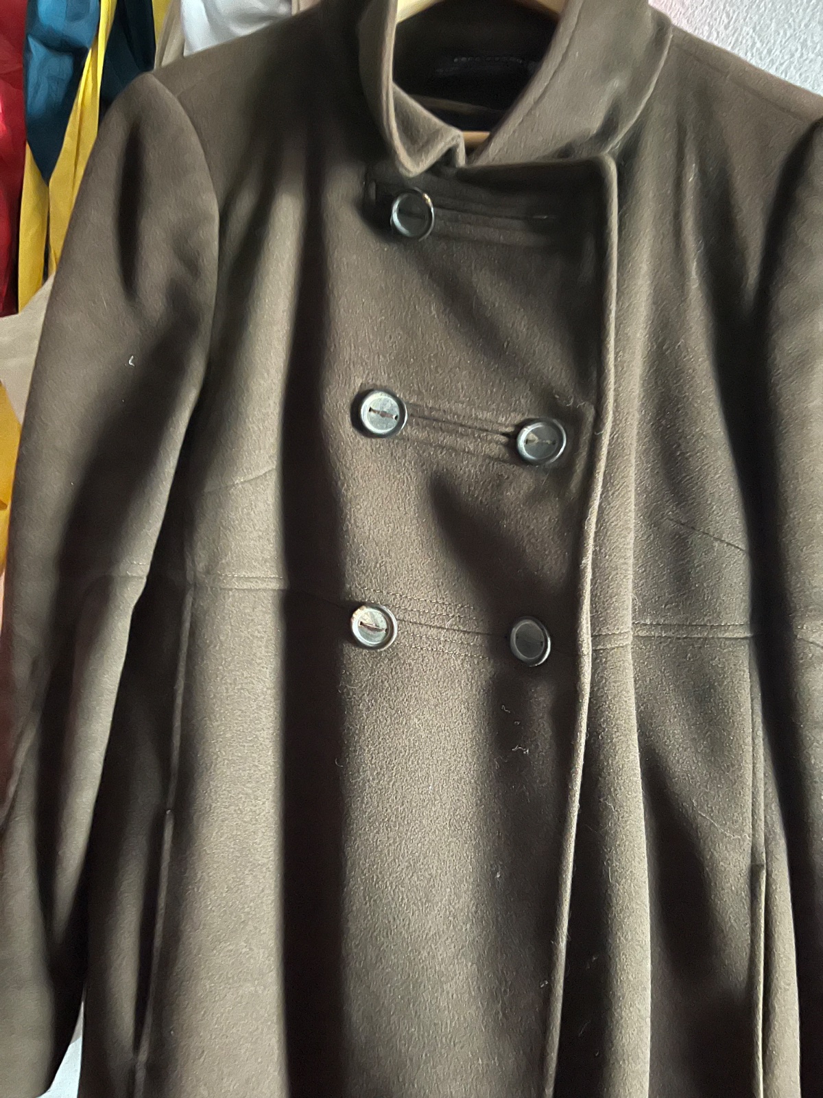 Veľmi pekny, kvalitný kabátik, je strihaný do A a je tam veľký podiel vlny. Nikdy sa tam neurobili žiadne žmolky, nosila som ho rada.