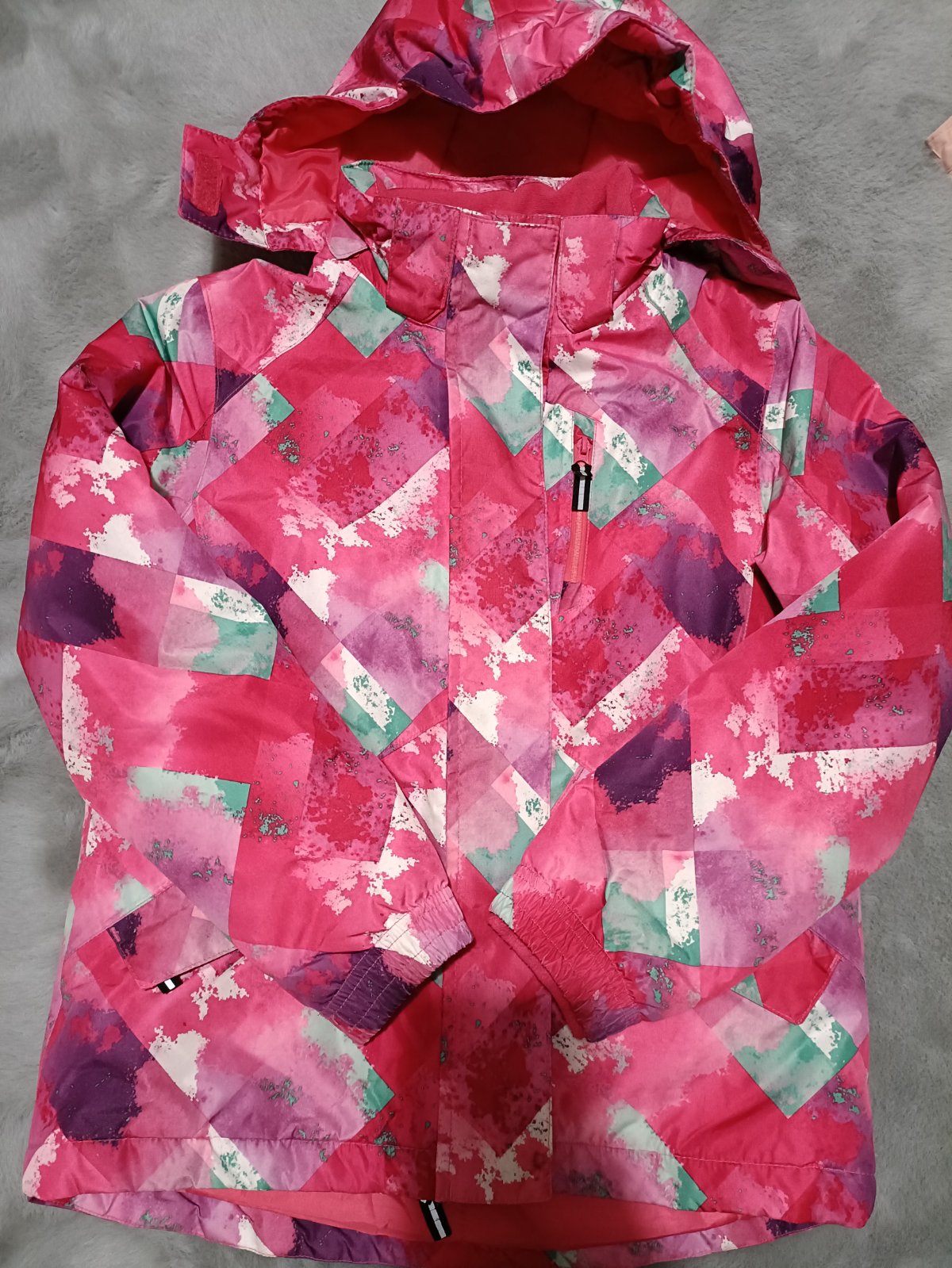 Lyžiarska bunda 134/140,vnútri pás proti snehu na cvoky, odnímateľná kapucňa,bez poškodeni.