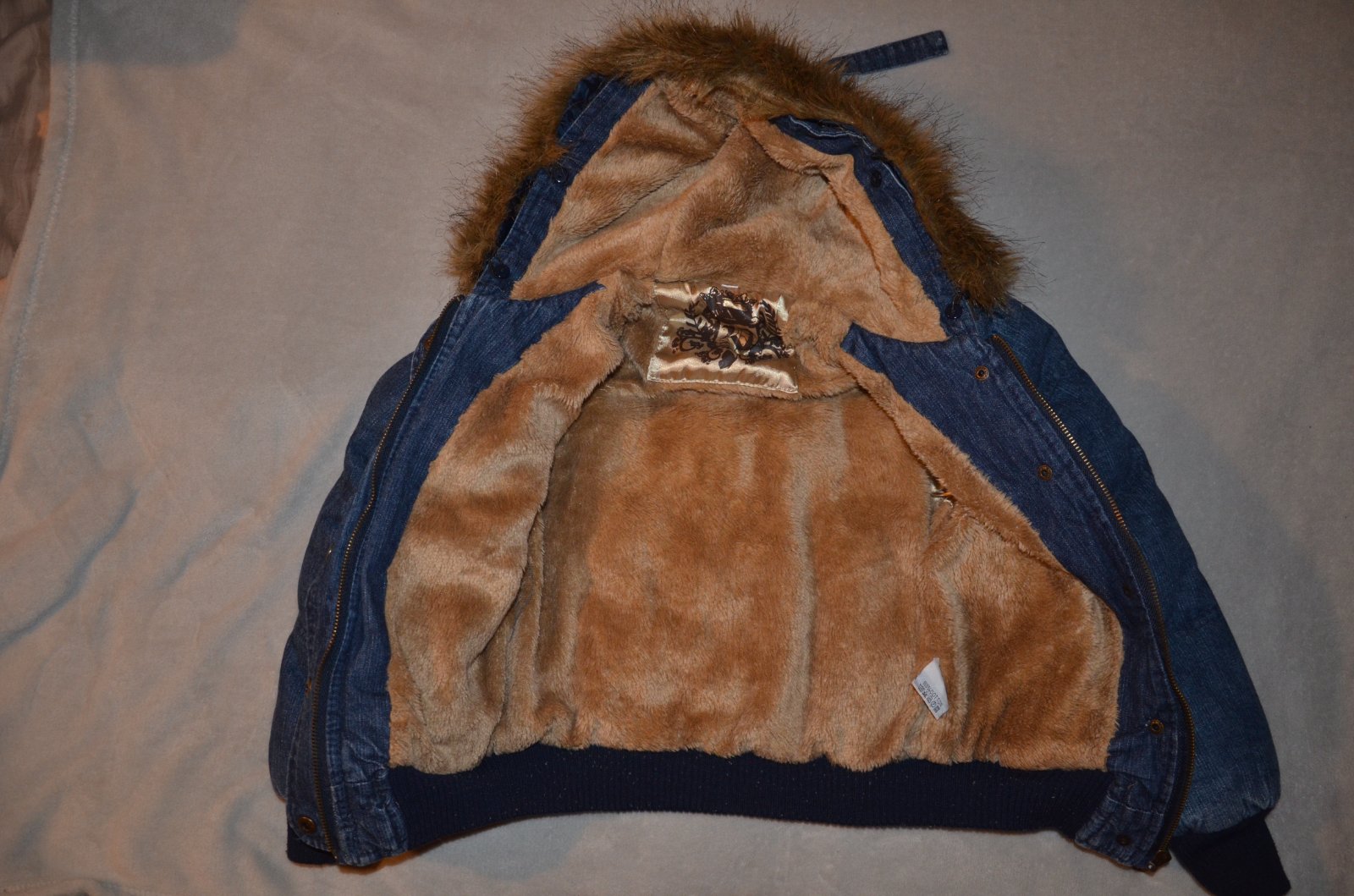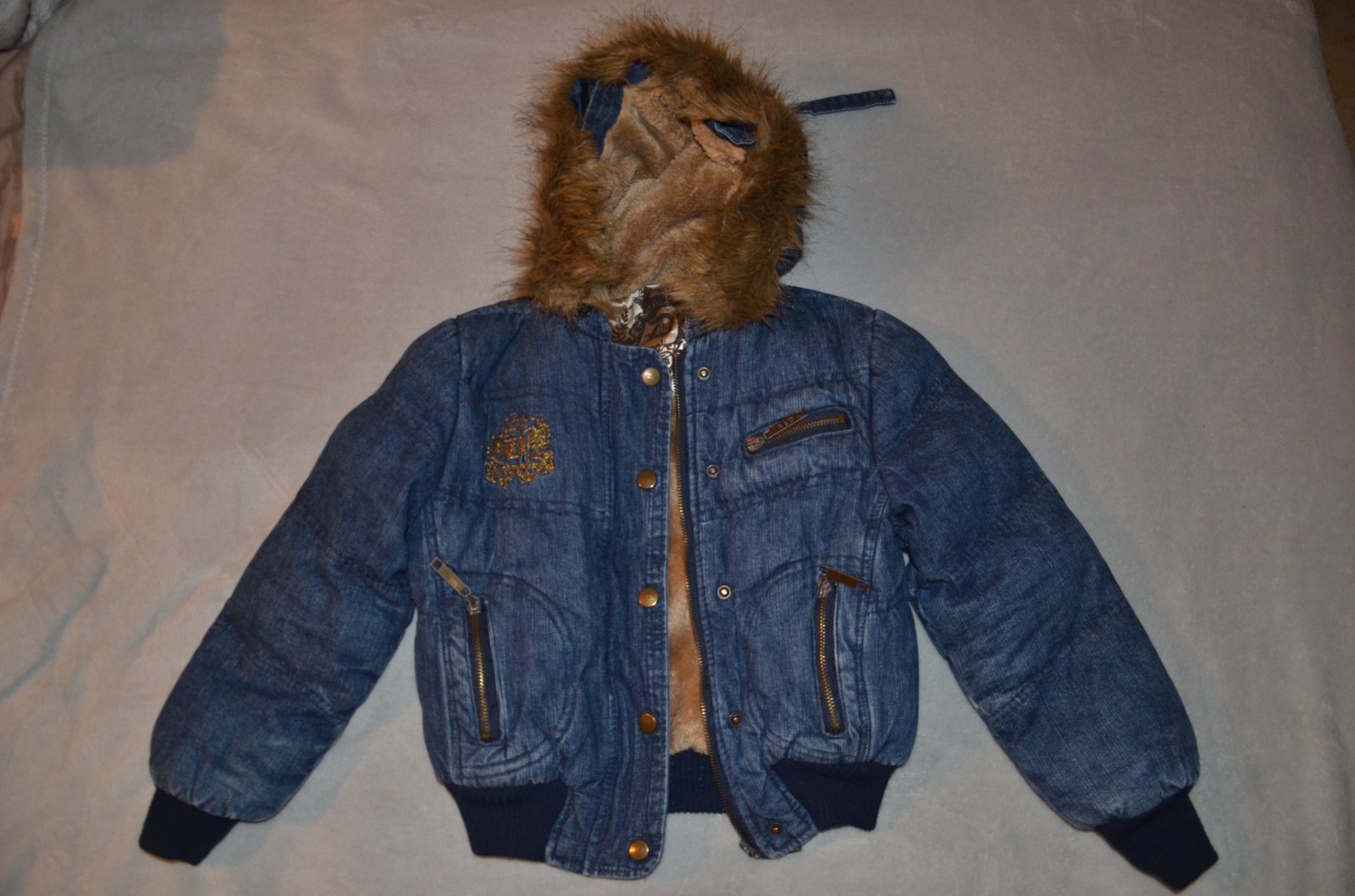Detská bundička, veľk. 8 (skôr na menej). Zvonka riflovina, vnútro s kožušinkou.