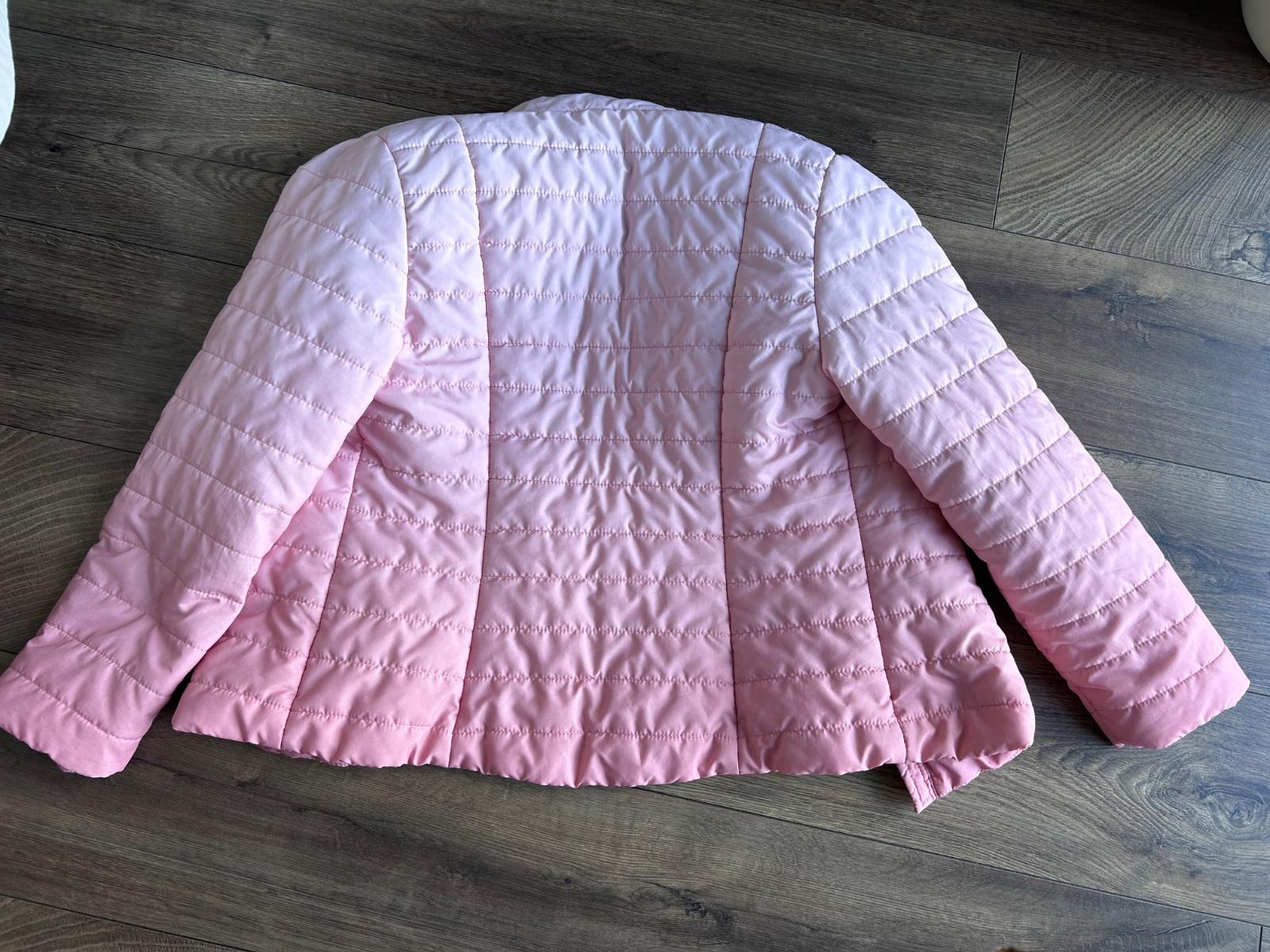 Krásna prechodná elegantná bundička, v top stave, bola oblečená max.2 krát na chvíľku, rukávy su pekne nariasené, kratšia.