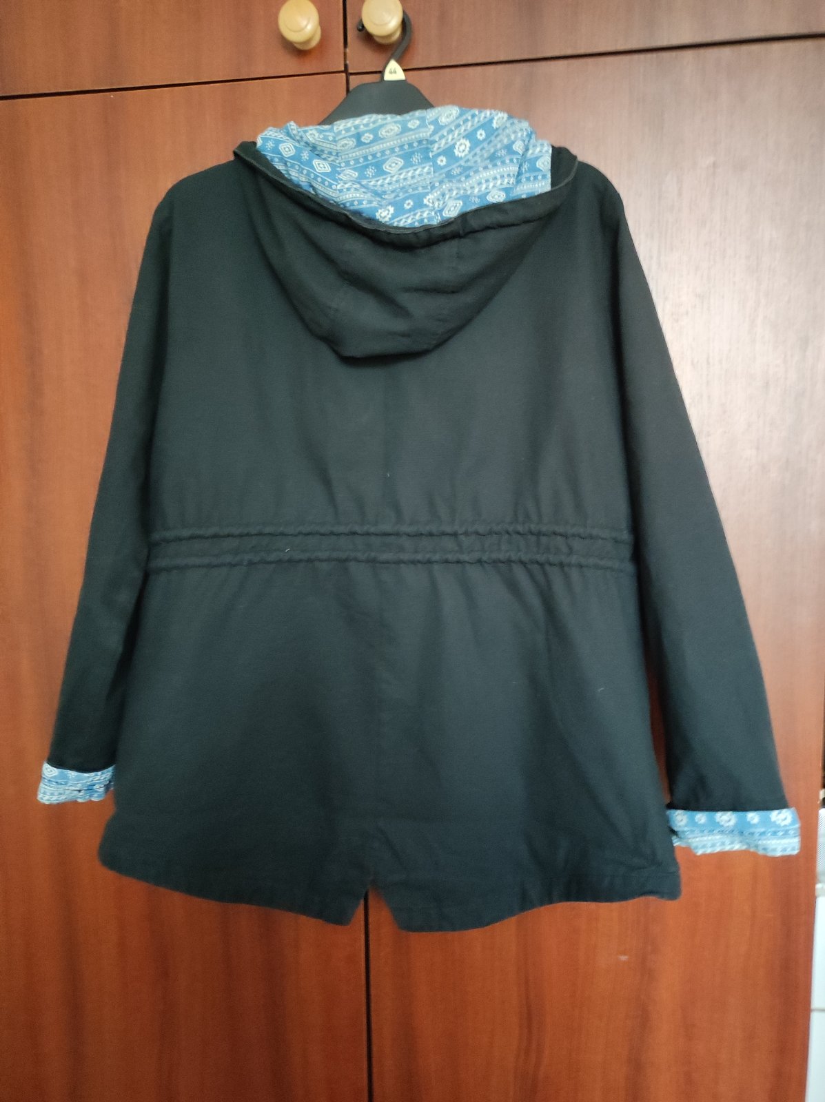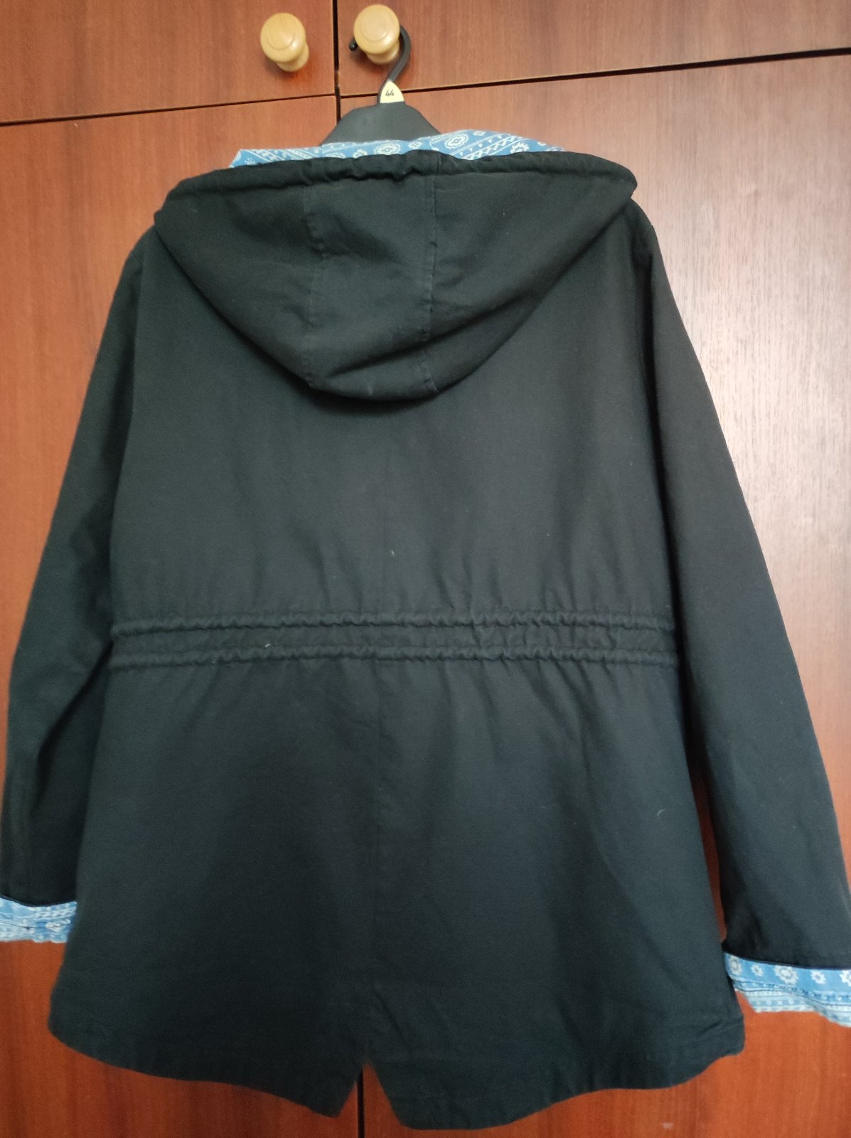 Predám sýto čiernu zachovalú bundu (parku), minimálne nosena. Zips funkčný. Šírka 56cm, dĺžka od ramena 77cm. Bez flekov. Materiál ako hrubšia riflovina. Pekná podšívka na kapucni a rukávoch. Cena + poštovné