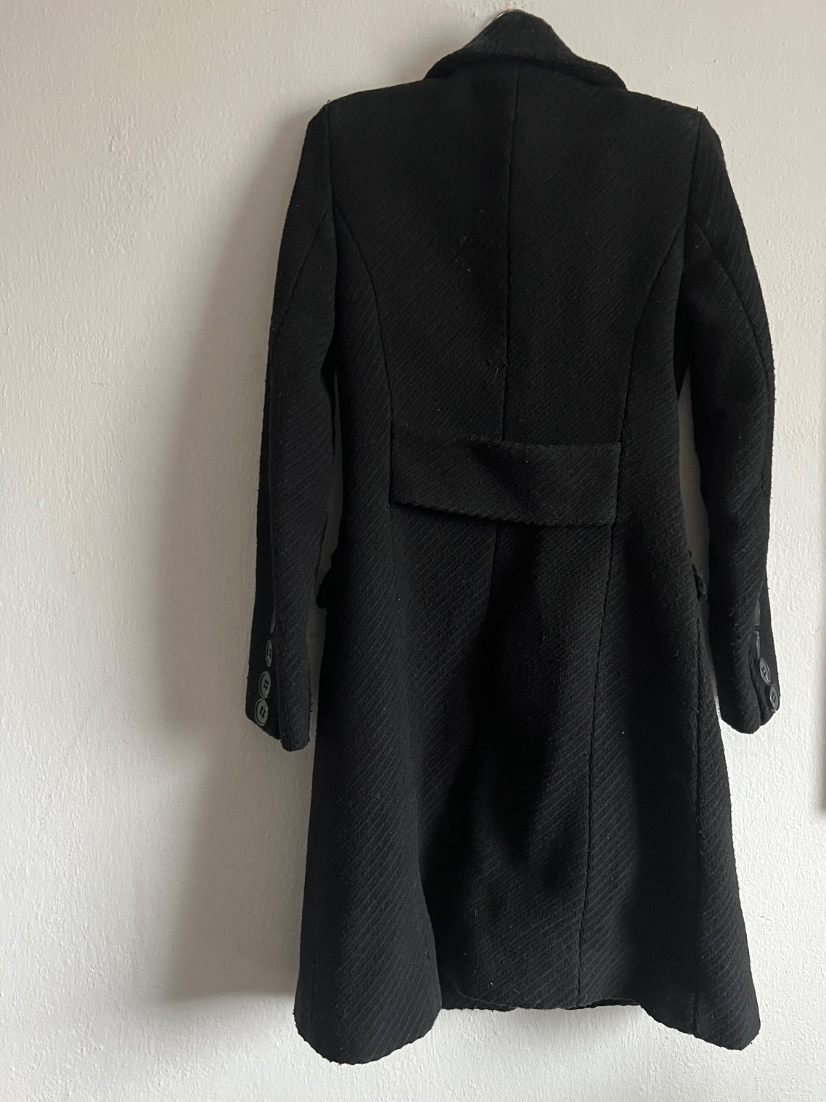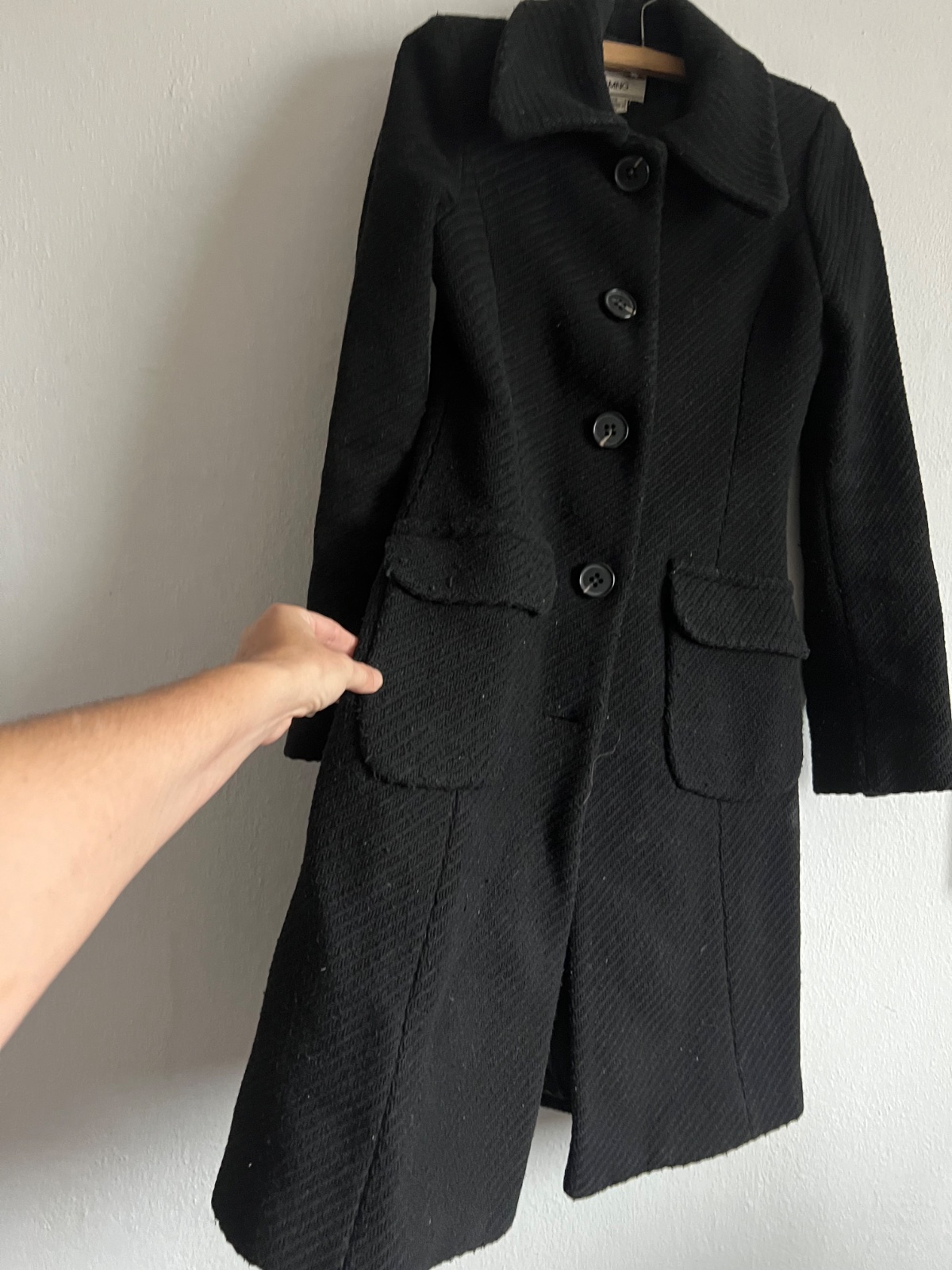 Mango vlneny wool kabat ( 50 perc vlna) cierny hrHruby zimny kabat chyba 1 gombik , moznost presit z rukava , su tam 4 , bezne znamky nosenia vlny