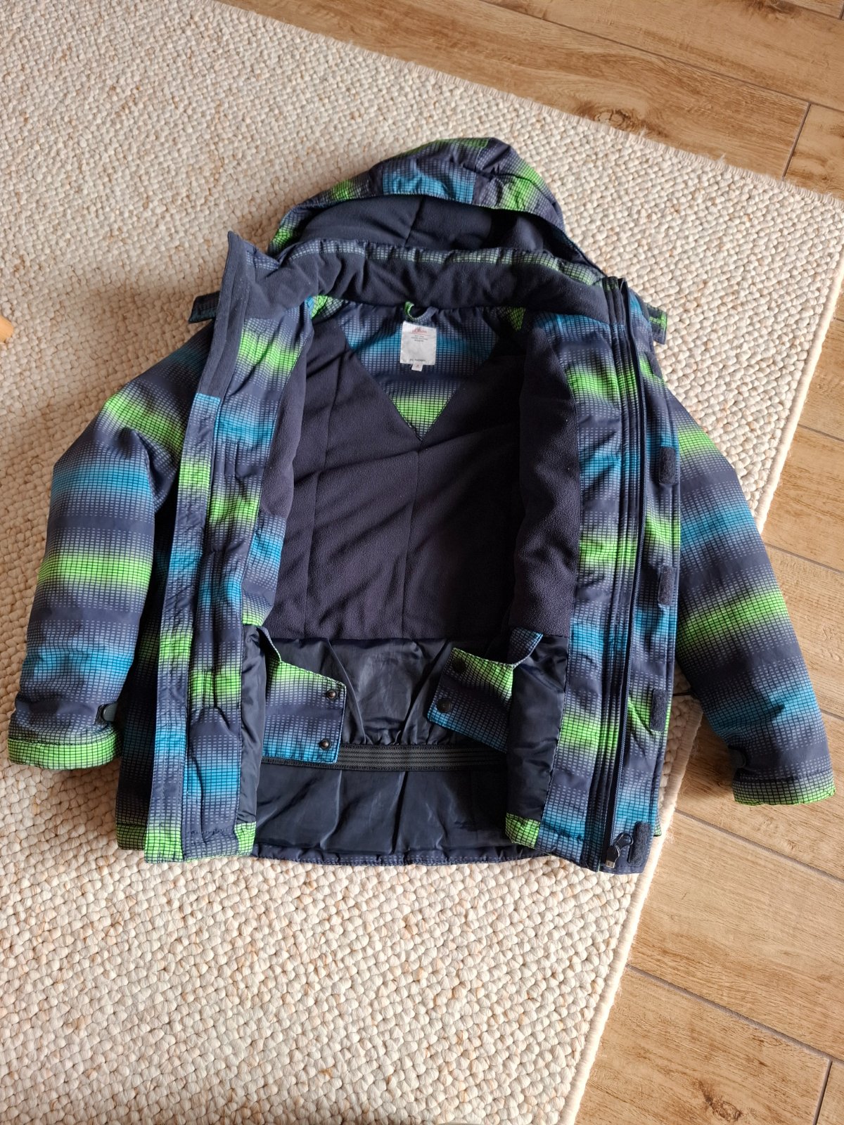 Posuvam zimnu bundu v peknom nosenom stave. Ma malu dierku na vacku a jemne vydratie. Inac bez vaznych poskodeni. Je podsita flisom.