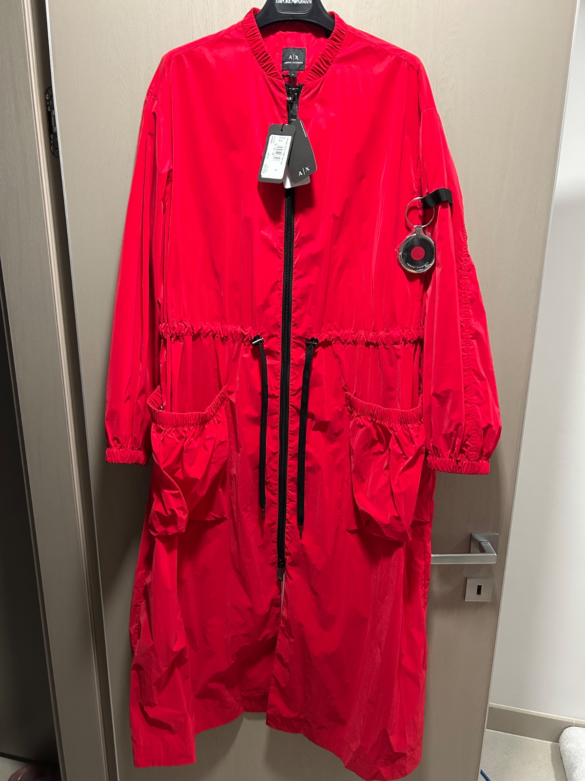 Armani Exchange bunda dlhá , veľkosť M ,100% originál, ešte s visačkami, mám k nej aj papierovú tašku armani, pôvodnal cena 180€, moja pevná cena 80€, možný odber v Ba, poštovné, vhodné ako darček, kľudne píšte sms, volajte 0905215552