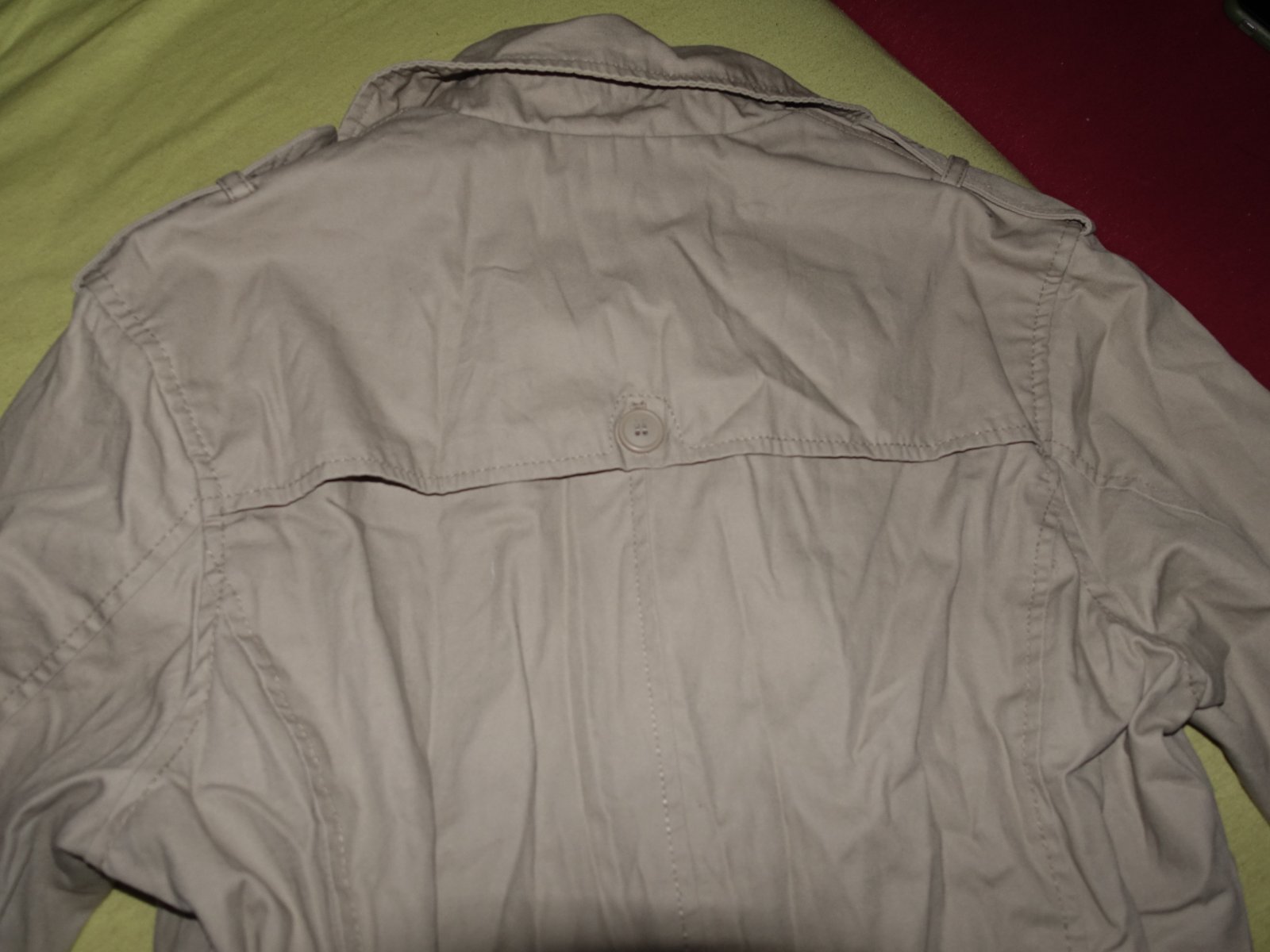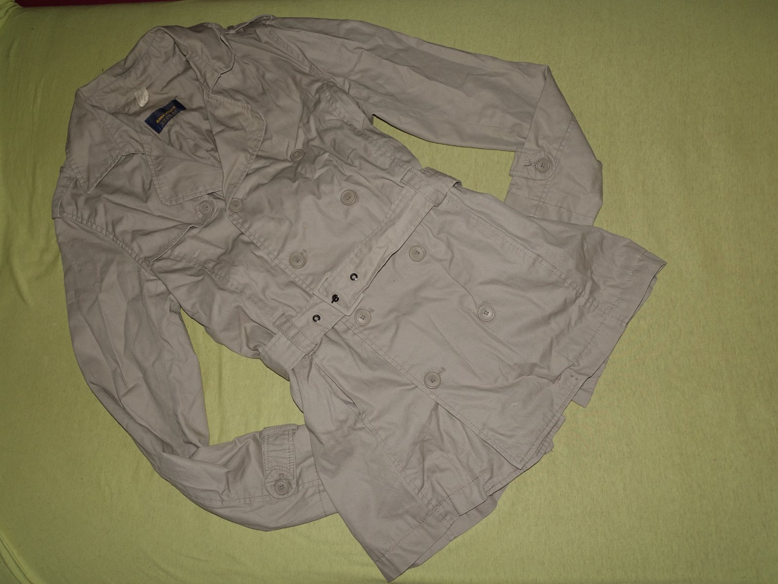 Pekny tenky kabatik vo velmi dobrom stave. Je len podsity. Je takej sivo-bezovej farby.