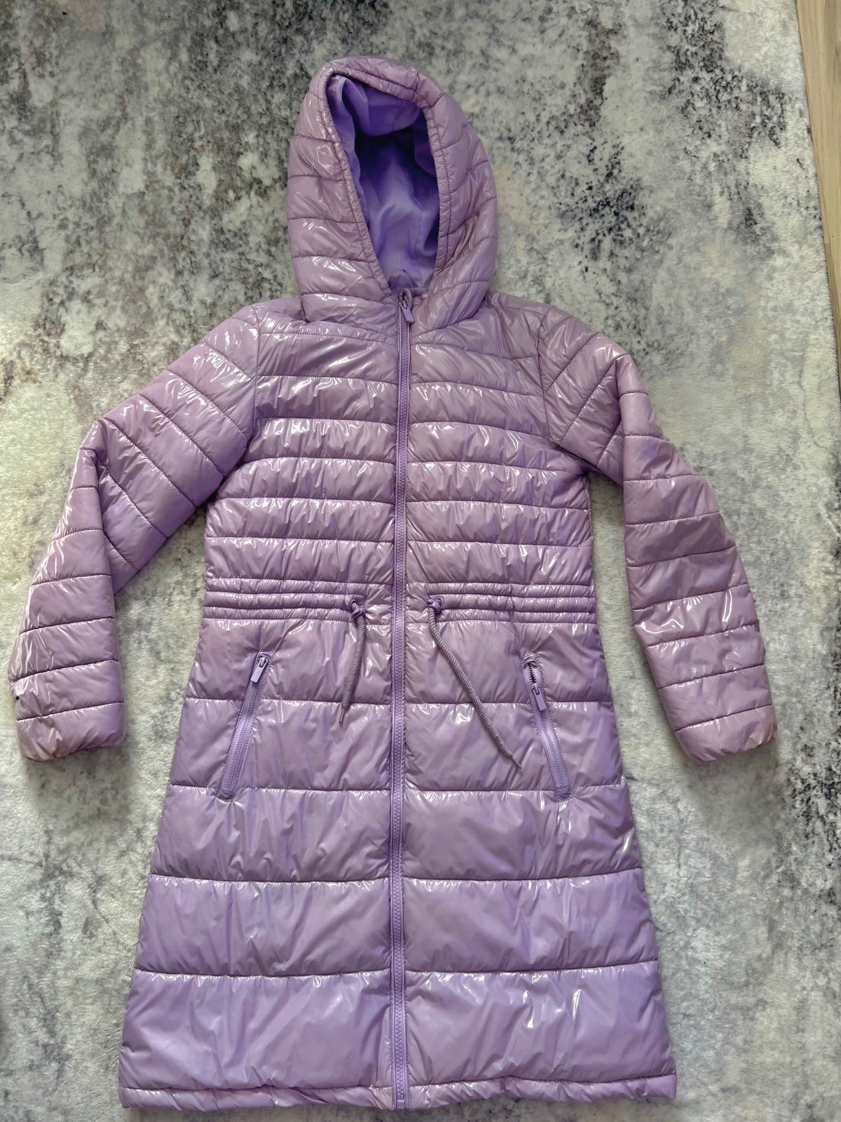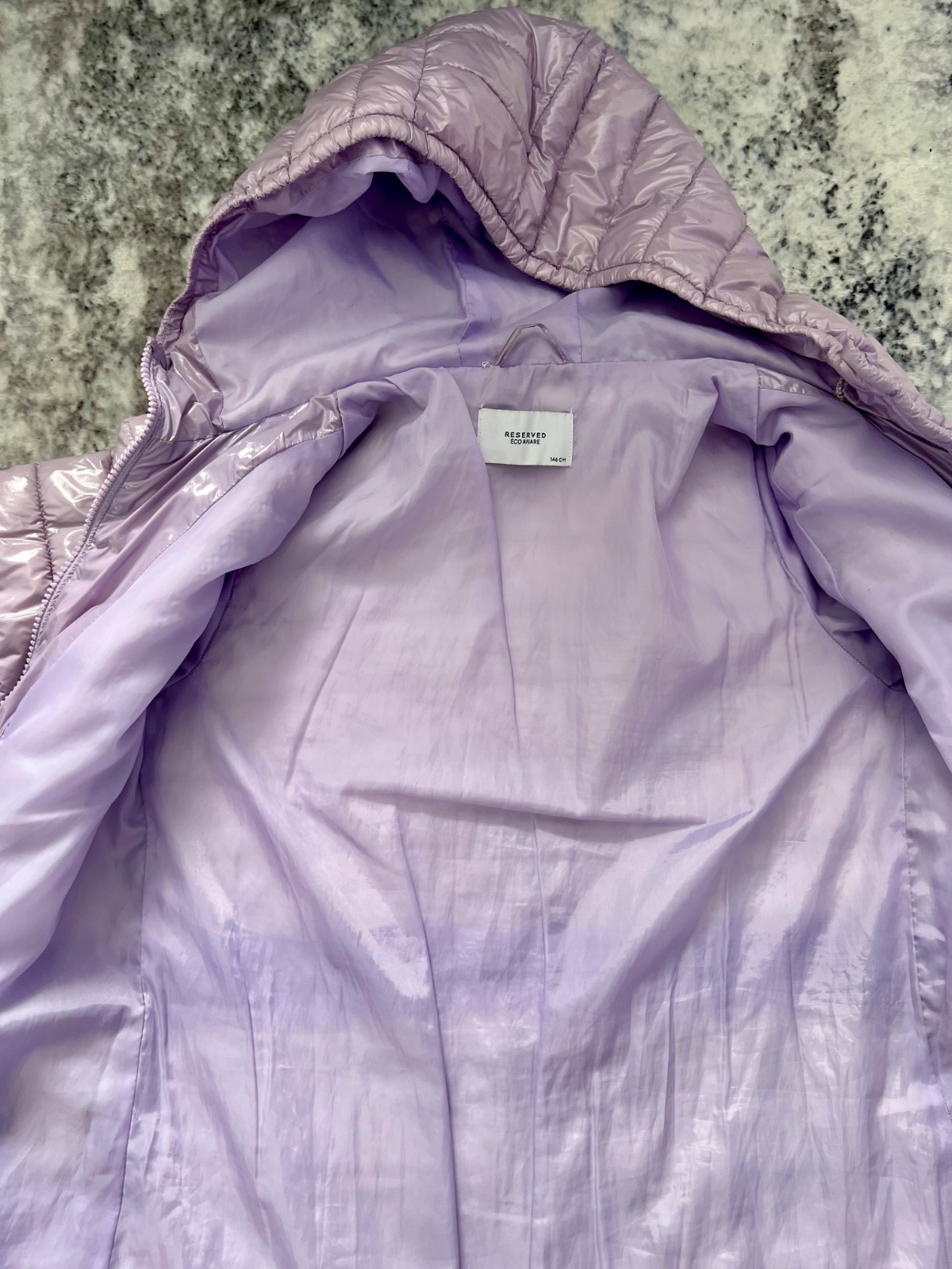 Krásna dievčenská bunda je peknej lesklej bledo fialová farba ako nová nepoškodené
