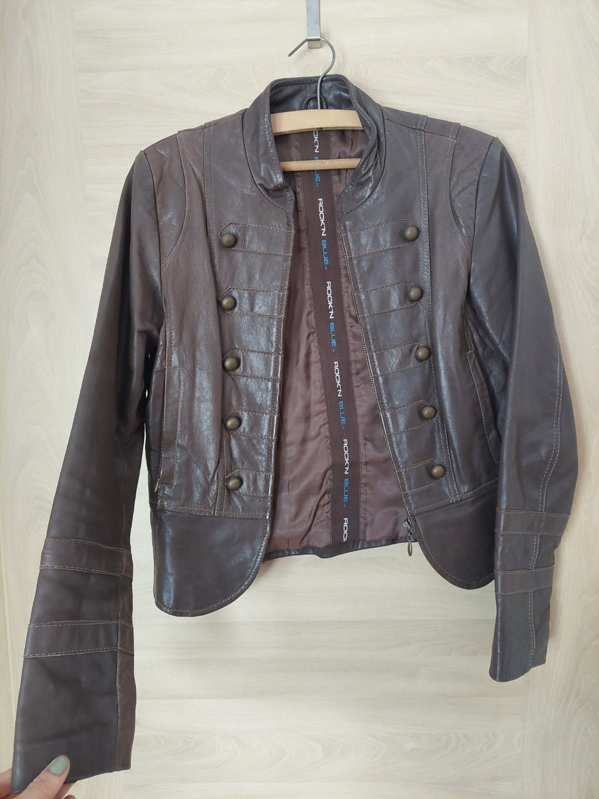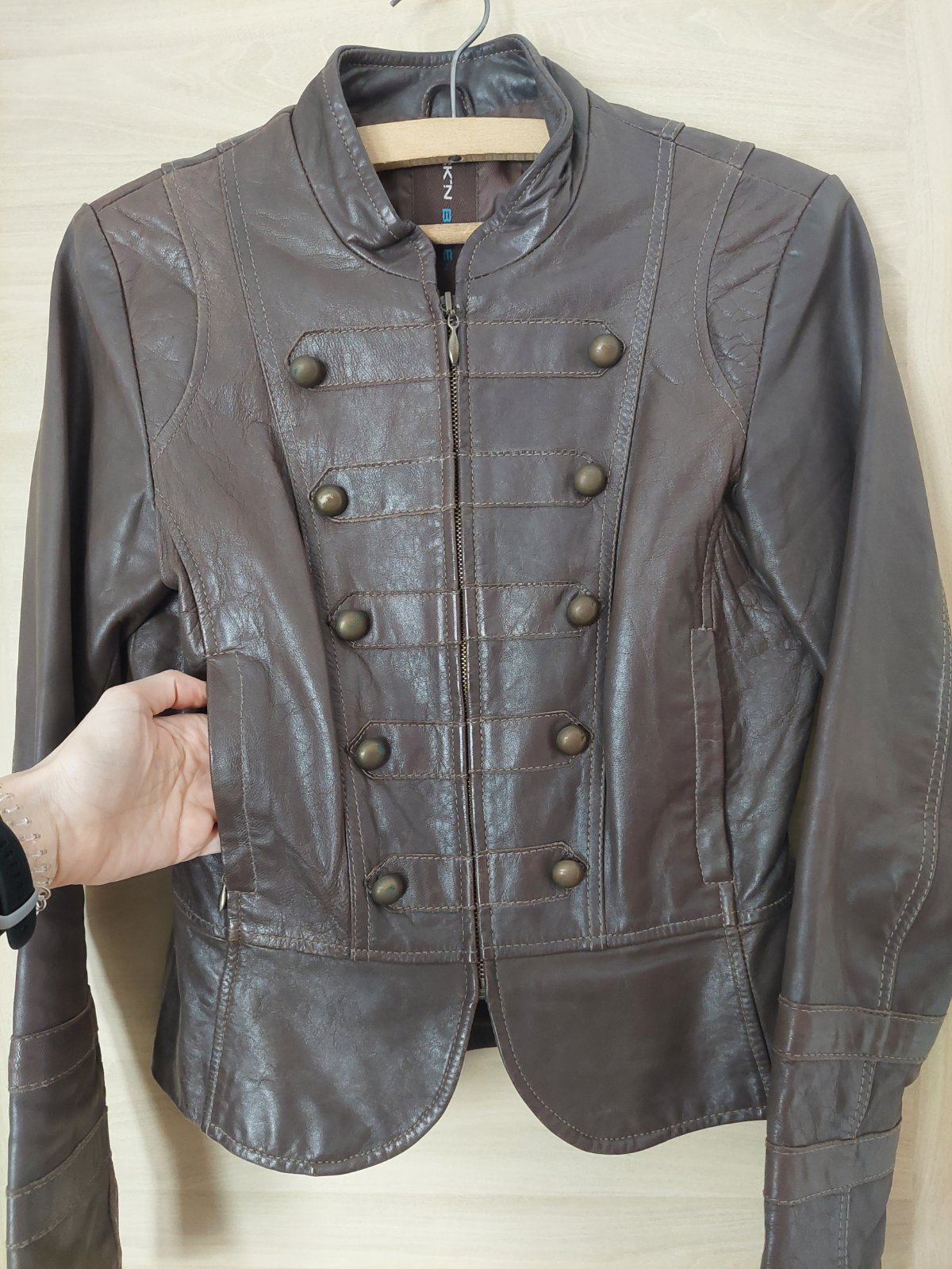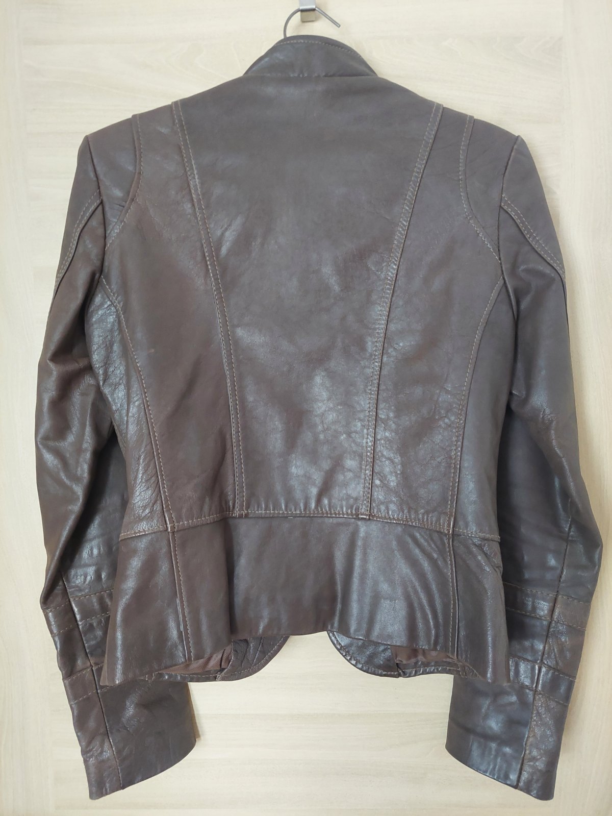 Kožený značkový kabát hnedej farby, veľmi mäkká koža. Na zips, viac vreciek. Nový, ešte s visačkou. Nevhodný dar, nesadol mi. Pôvodná cena 350eur. Teraz ani tretina. Vonkajšia šírka cez prsia je 47...