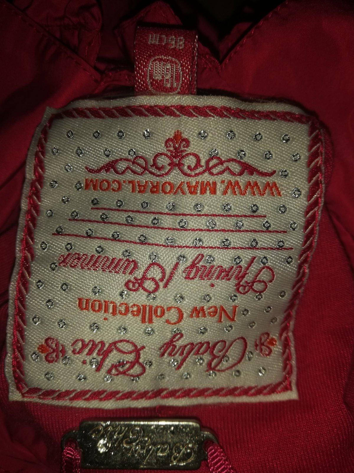 Kabátik je v peknom nosenom stave. Krásne ukáže na postave, da sa kľudne ponosiť aj ako 92, záleží samozrejme od výšky dievčatka. Pôvodne na 3 gombíky, ale jeden chýba - úplne vrchný. Dcére som dal...