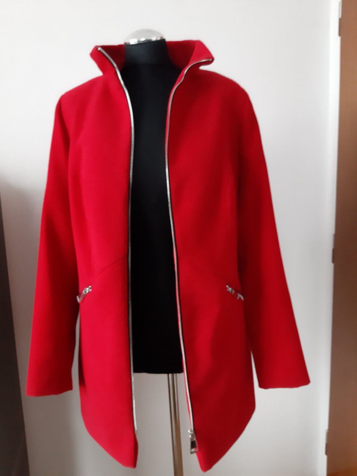 Ponúkam na predaj červený trenčkot, je výrazný, veľ. 42.