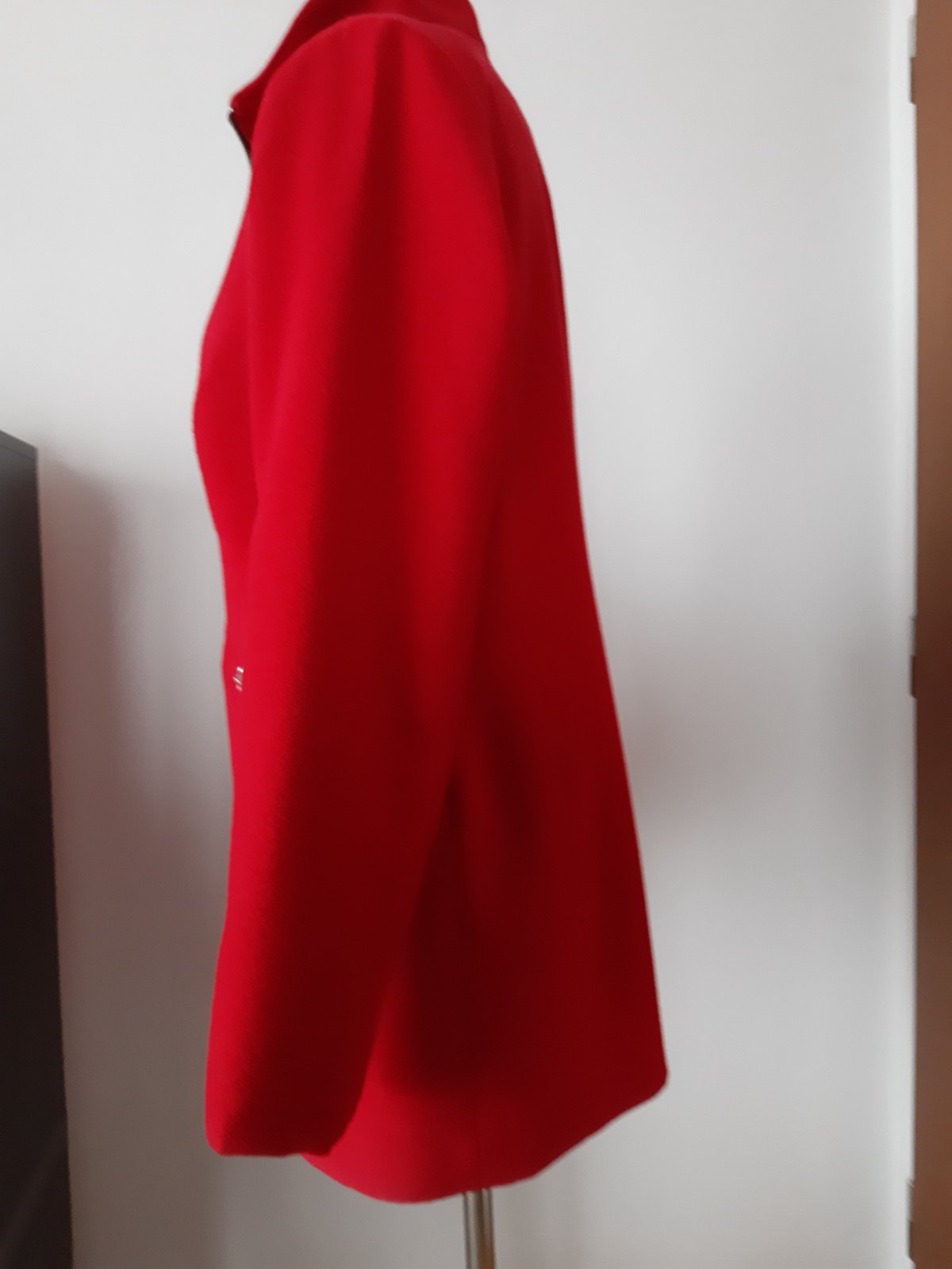 Predám červený kabátik na prechodné obdobie značky Betty Barclay, veľkosť 42, zapínanie vpredu na 2 veľké gombíky, 3/4-ový rukáv, celková dĺžka 55cm