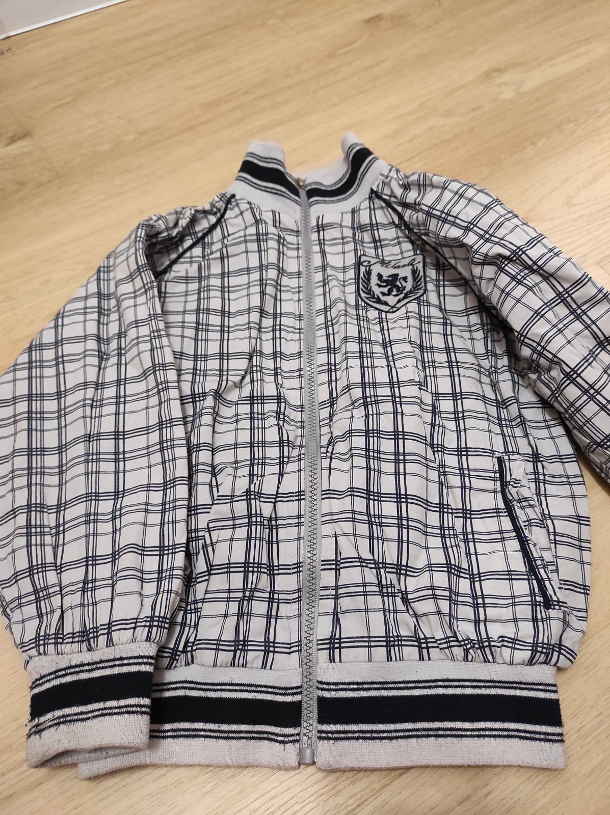 Vetrovka bez poškodenia, na pantentoch minižmolky. Dĺžka 45 cm, rukáv od krku 52 cm. Veľkosť asi 110/116