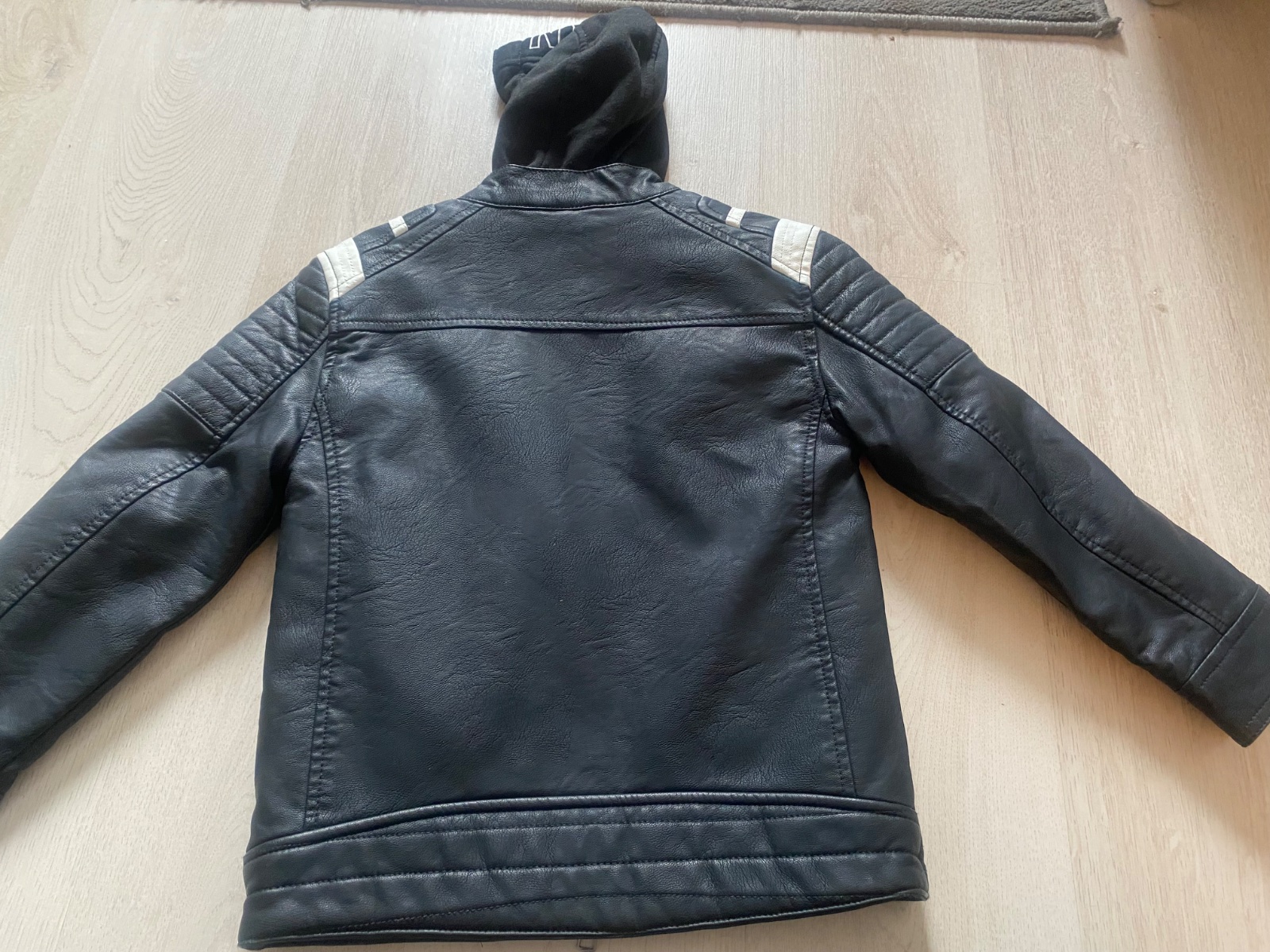Predám parádnu hrubsiu koženkovú bundu. Podsita. Nosené minimálne, ako nová. Kapucňa je látková, pripevnená gombíkmi a dá sa odopnúť. Veľkosť 128.