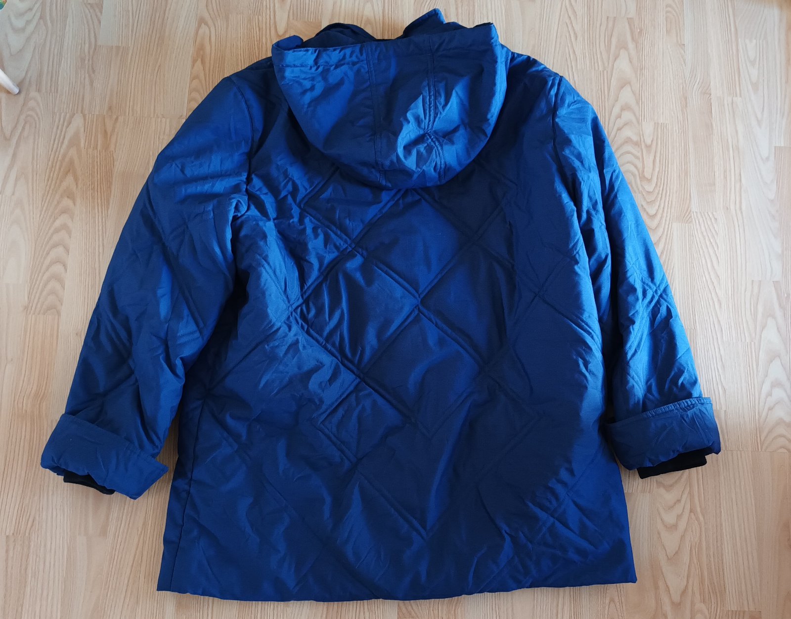 Bunda krásnej modrej farby v super stave,ako nová, je to volnejší akoby oversize strih, kapucňa odopínateľná, dĺžka 80cm, podpazušie 60cm