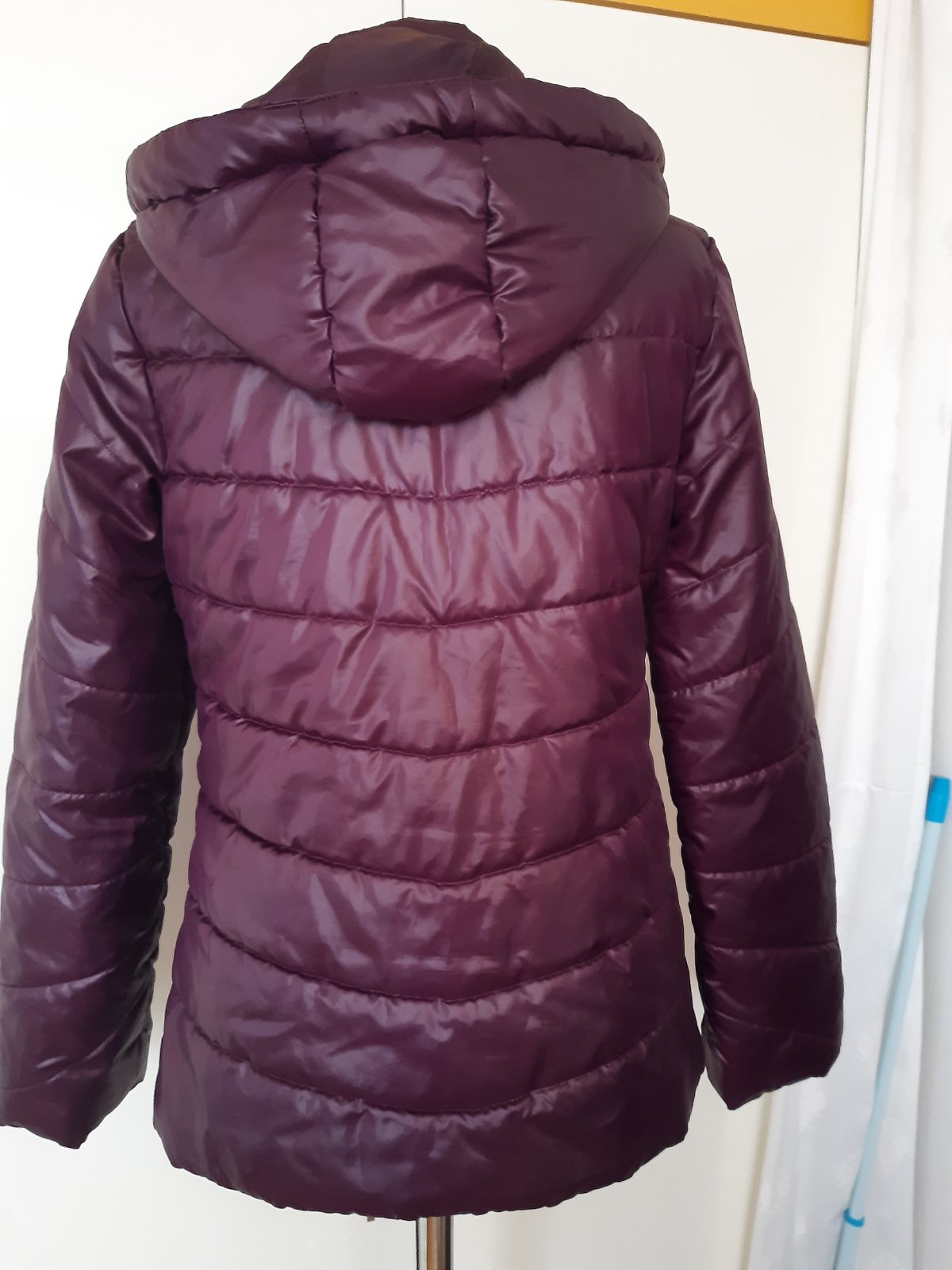 Bunda peknej bordovej farby s nádychom fialovej, dl. 72 cm, dl. rukáva 66 cm, šírka v podpaží 48x2 cm. Bunda je vo výbornom stave ako nová.