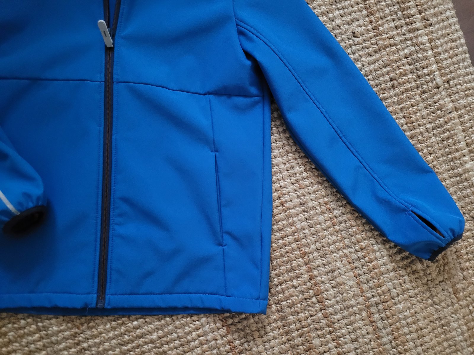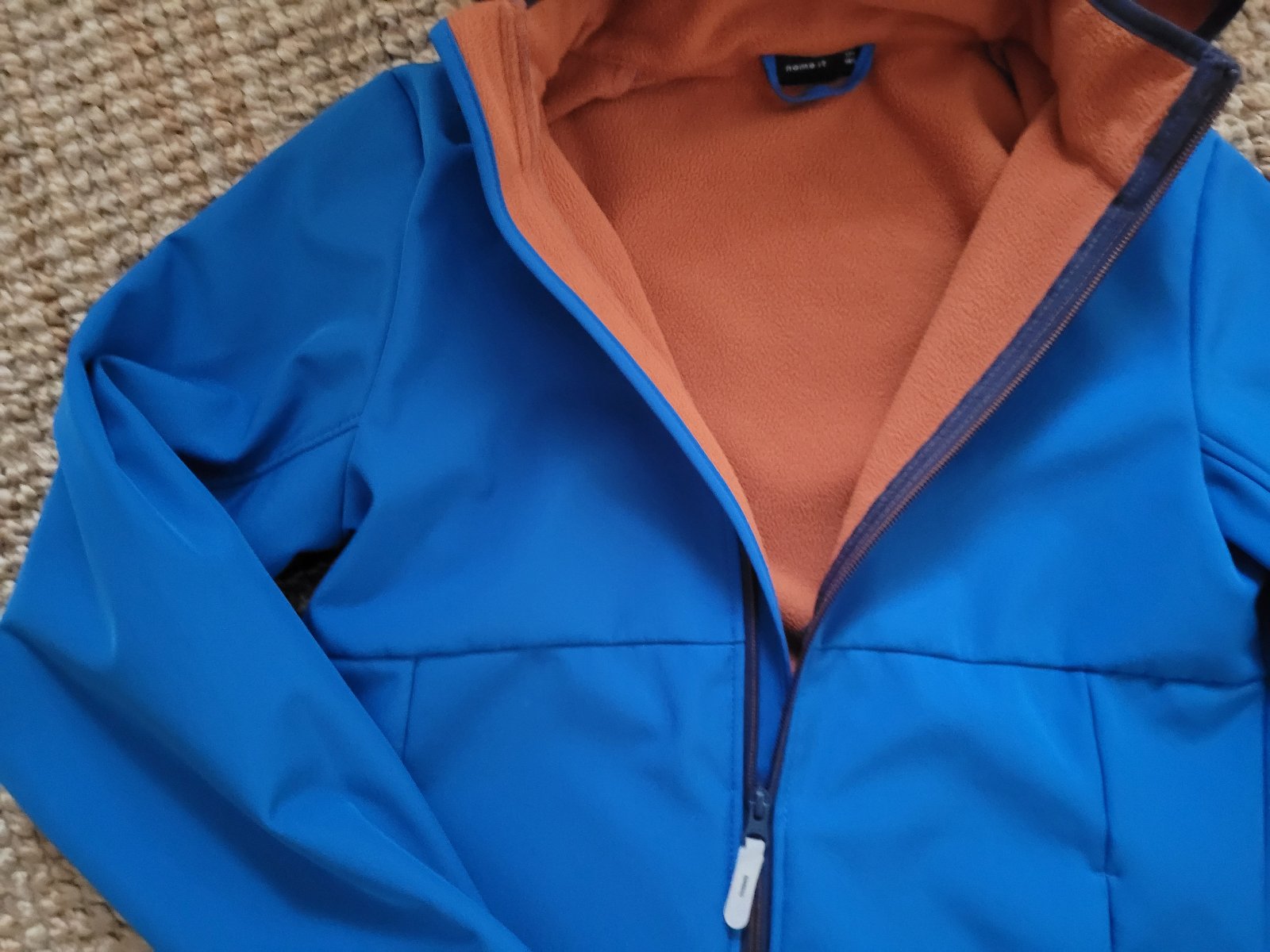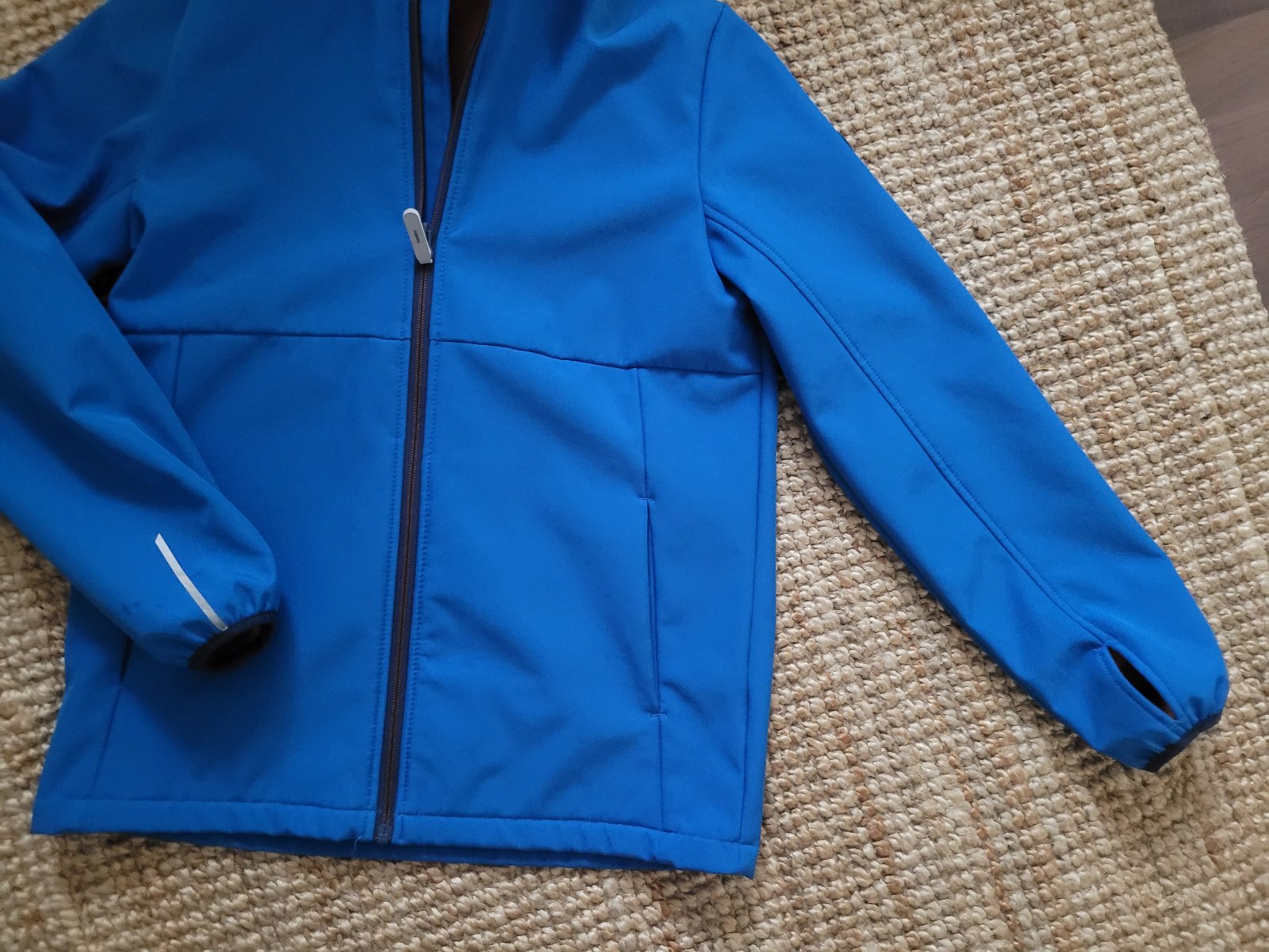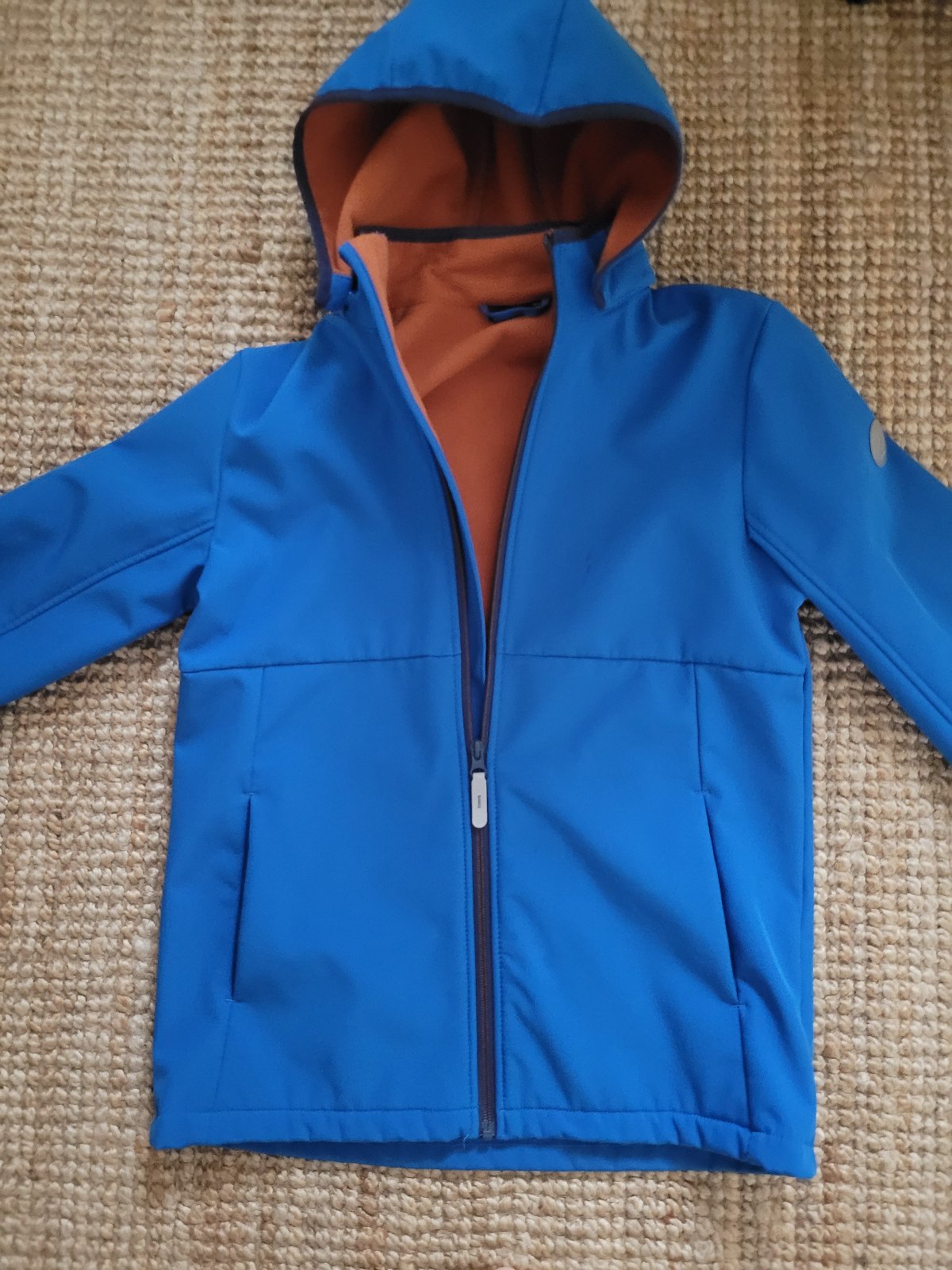 Zvnútra flísová, s otvormi na palce, vrecká, odopínateľná kapucňa. Ako nová, pár krát oblečená. Veľkostne 158-164