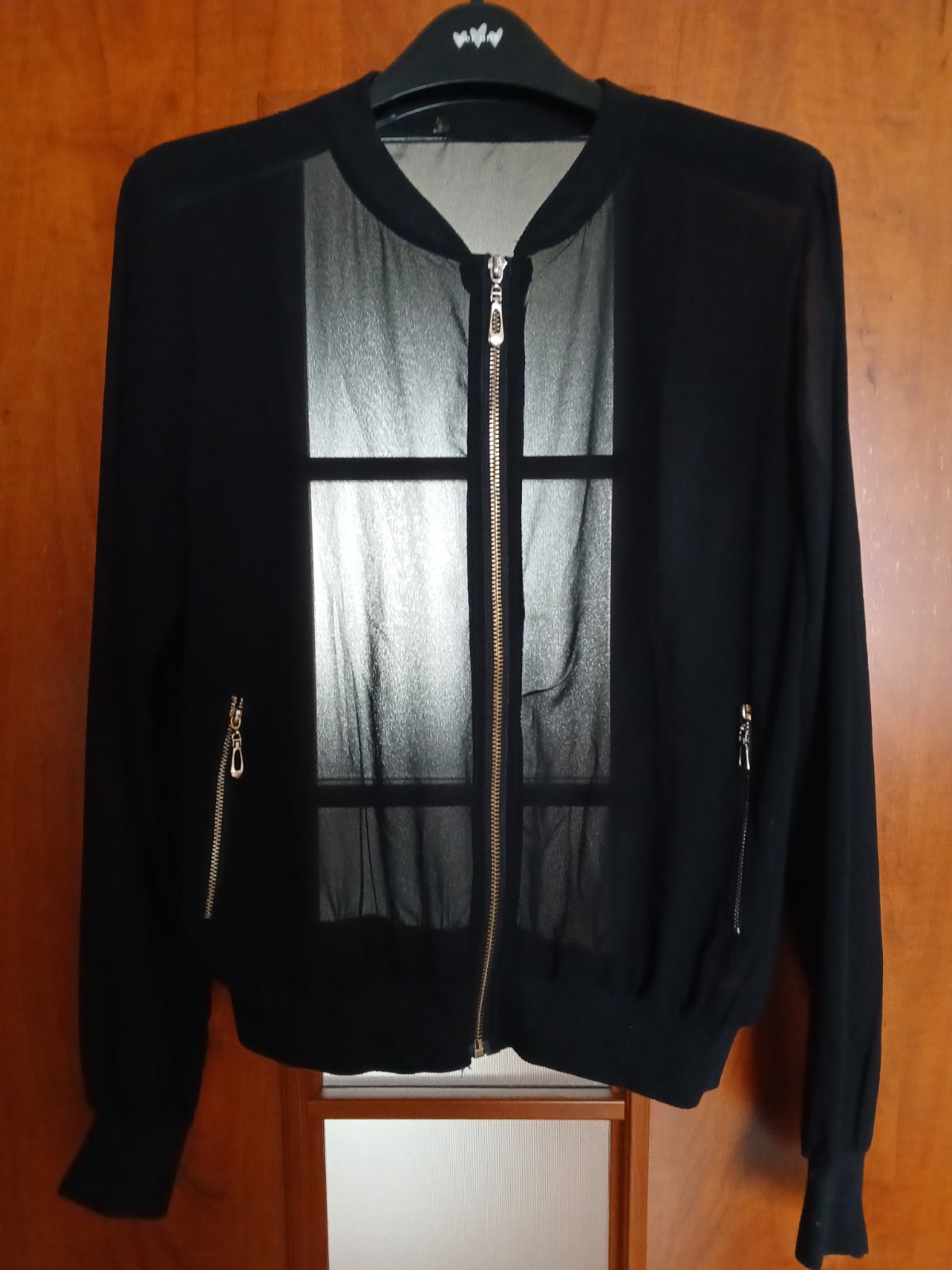 Dámsky čierny kabát veľkosti S, vhodný na prechodné obdobie.