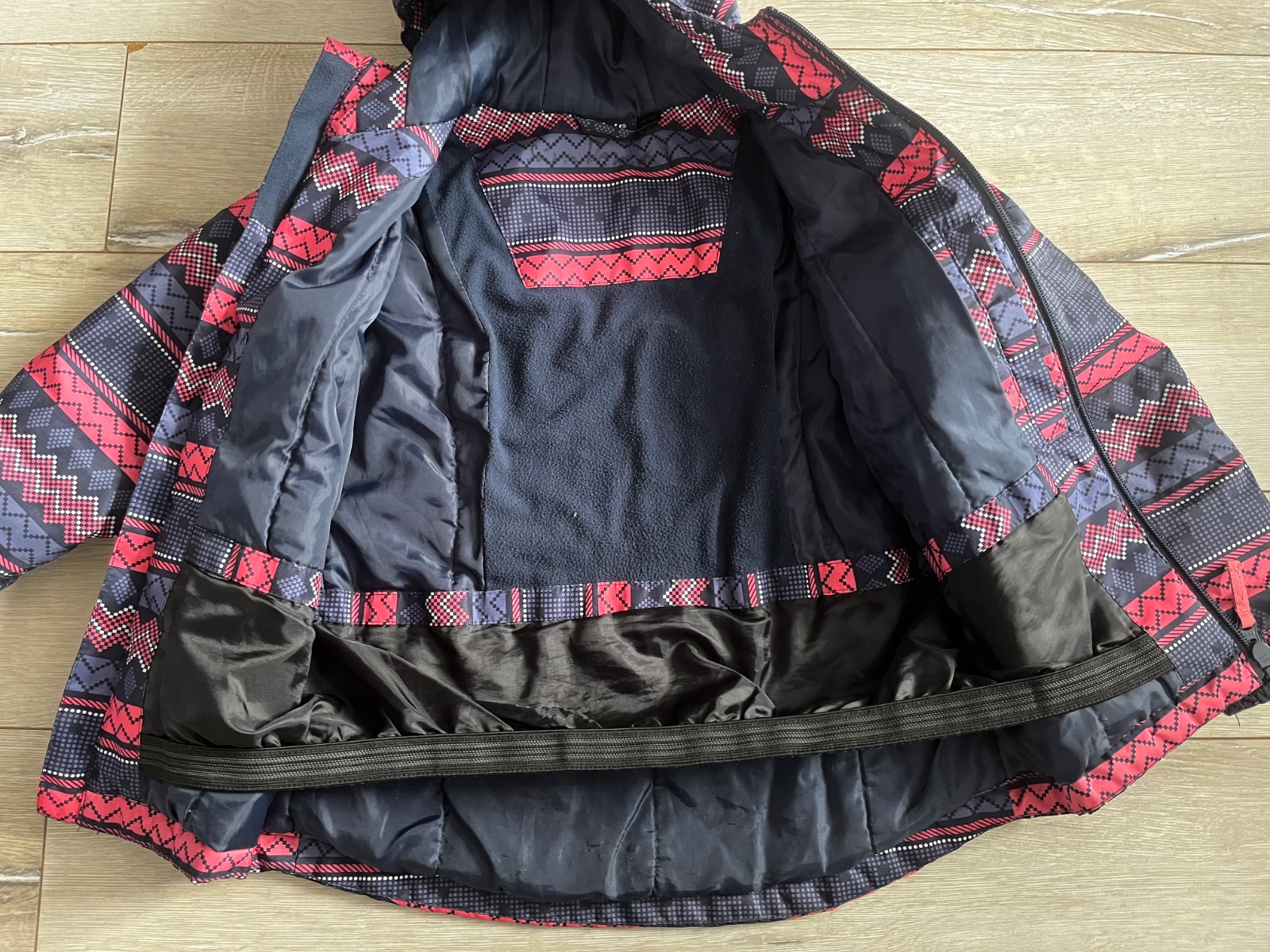 Zimna lyziarska vetrovka, velkost 122/128. So sneznym gumovym pasom a vrecku na rukave na skipass. Velmi dobry noseny stav, bez poskodeni. Farba cierna-ruzova. Cena 5€ + posta alebo osobne BA-Petrzalka.