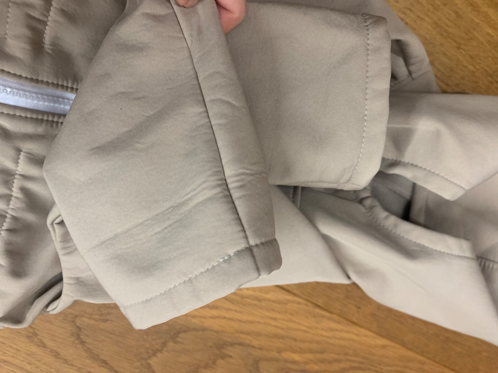veľmi dobrý stav, veľmi malé a nenápadné fliačiky na vrecku (nafotené) , krásna piesková farba