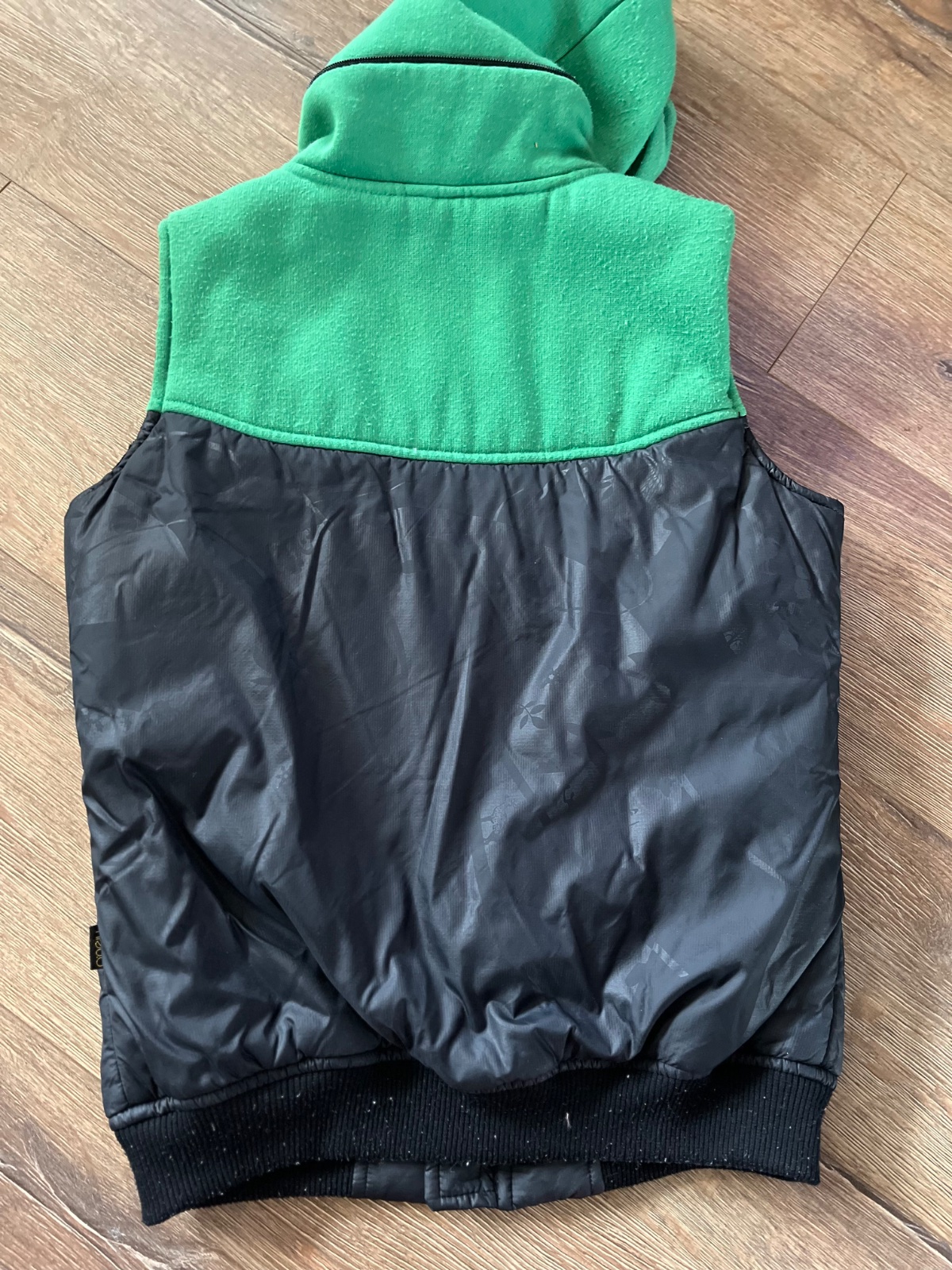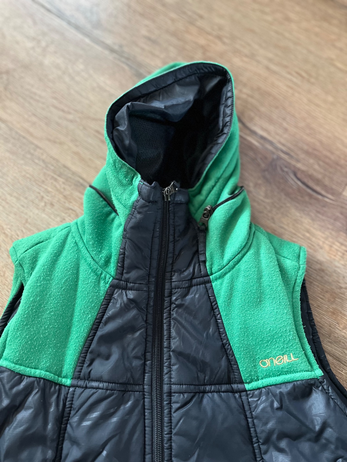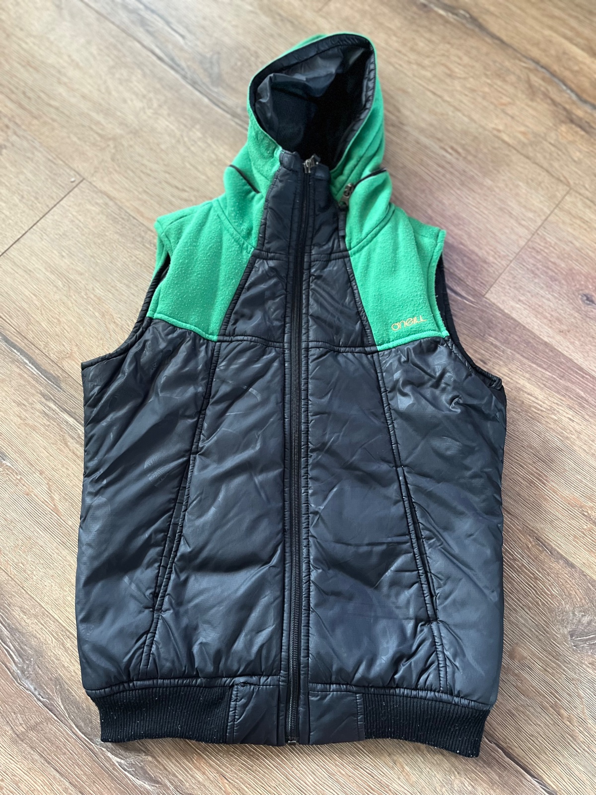 Predám vestu značky O'neill, velkost S, s kapucňou a zapínaním na zips. Dĺžka 62 cm, šírka pod pazuchami 45 cm.