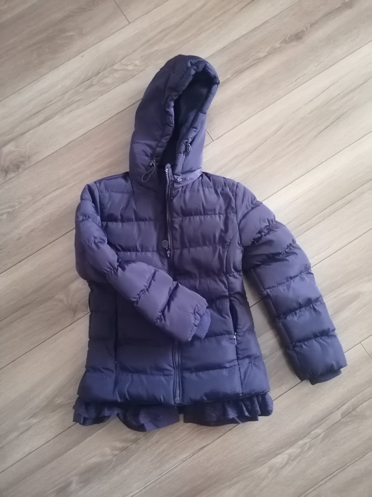 Bunda je nosená,ale nemá žiadne poškodenie. Určite ešte poslúži. Veľkosť 110-116.