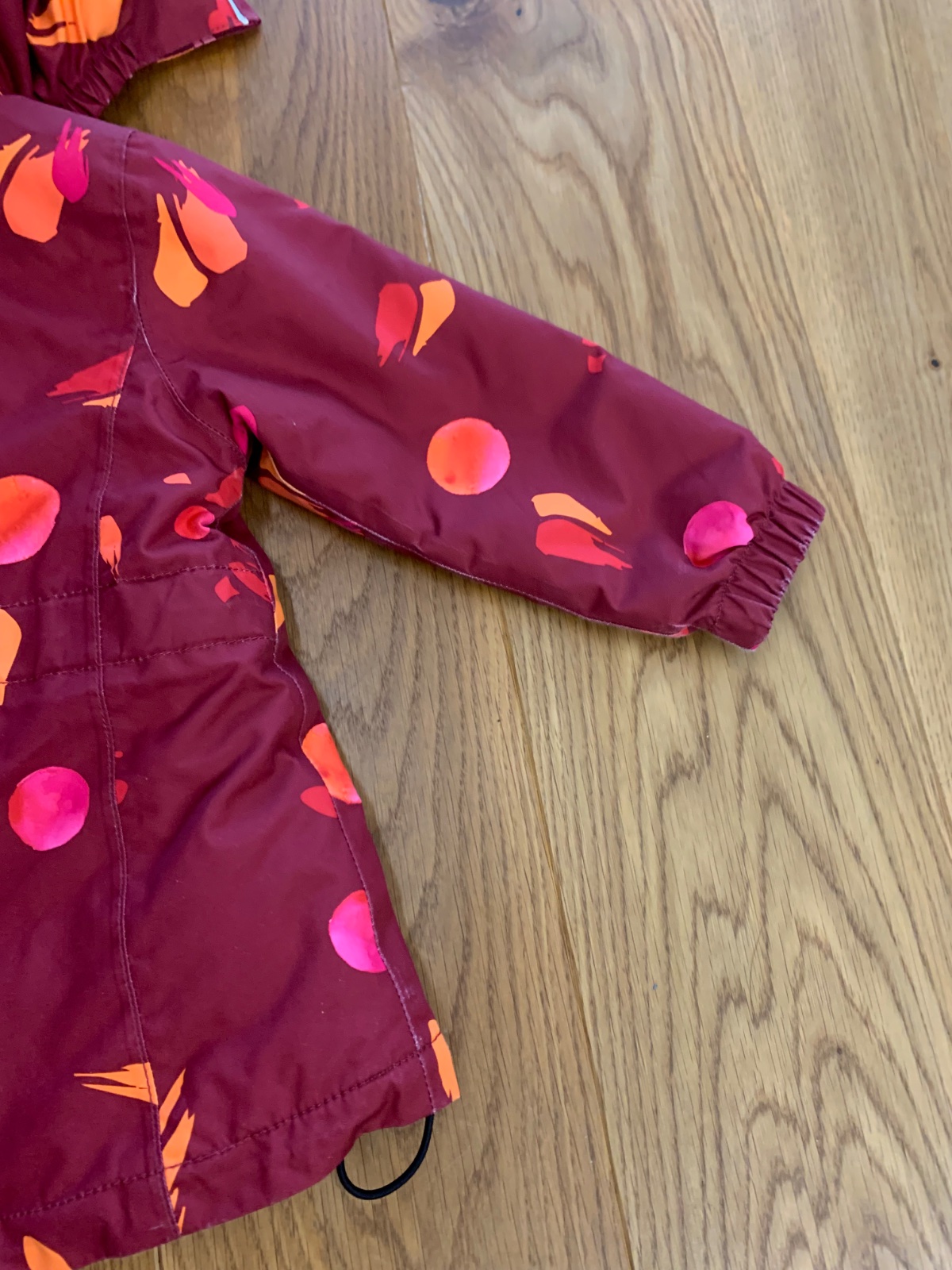 výrazne nosený stav, Kapuca odnímateľná, po bokoch 2 vrecká, v páse sa dá stiahnuť Značená ako 92, sedí aj ako 98.