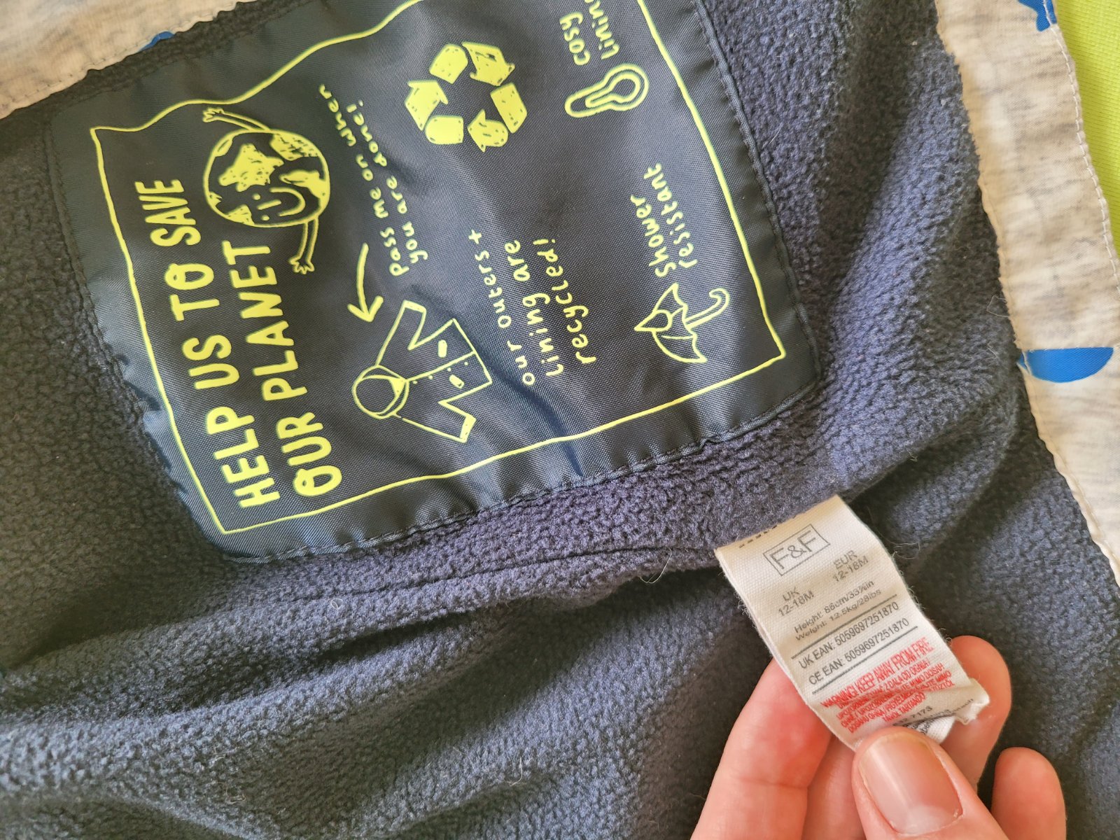 Nosená, poslúži, odrazky na chrbte sa zlupujú a aj fliačiky som našla, viď foto, ale nieje to ani poznať, pretože je bunda melírovaná, veľkosť 12 -18 mesiacov, 86cm