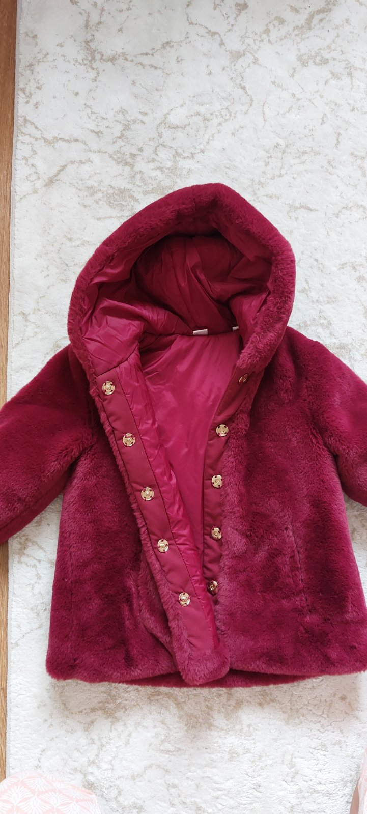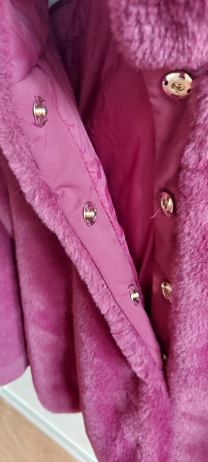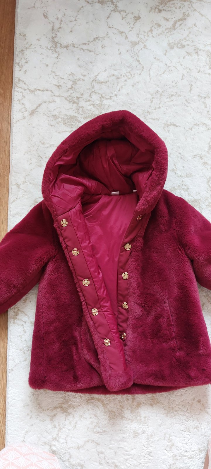 Predám veľmi krásny teplucky kabátik, úplne jemnucke chĺpky, zahreje. Mam k tomu zladenu aj baretku v prípade záujmu. Zapína sa na cvočky,kapucňa je na pevno. V super nepoškodenom stave.