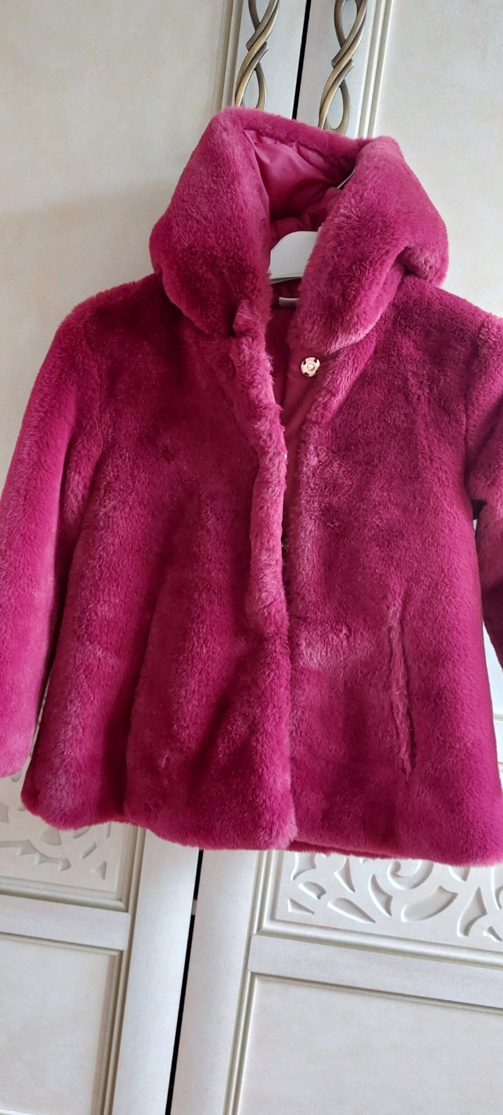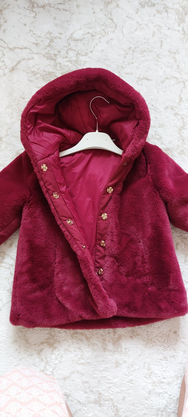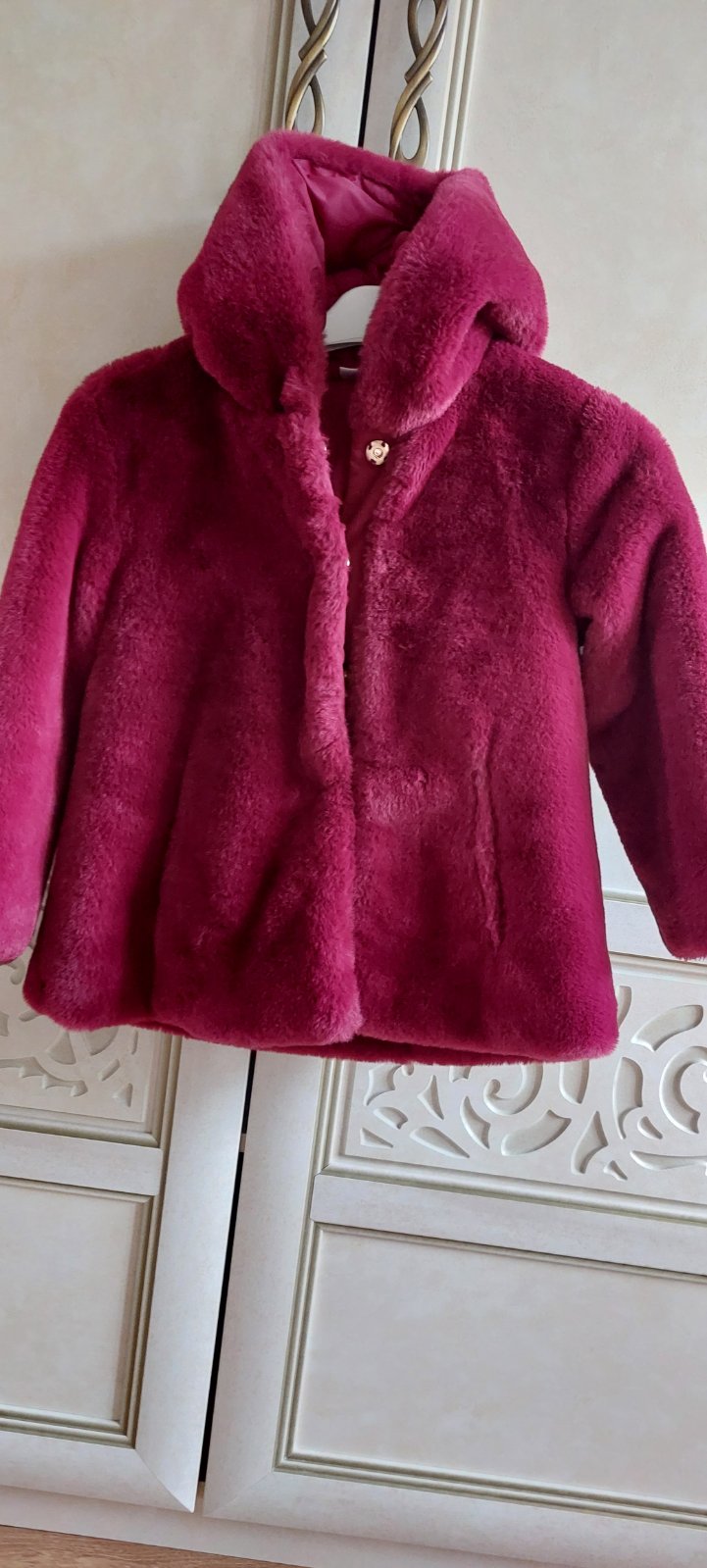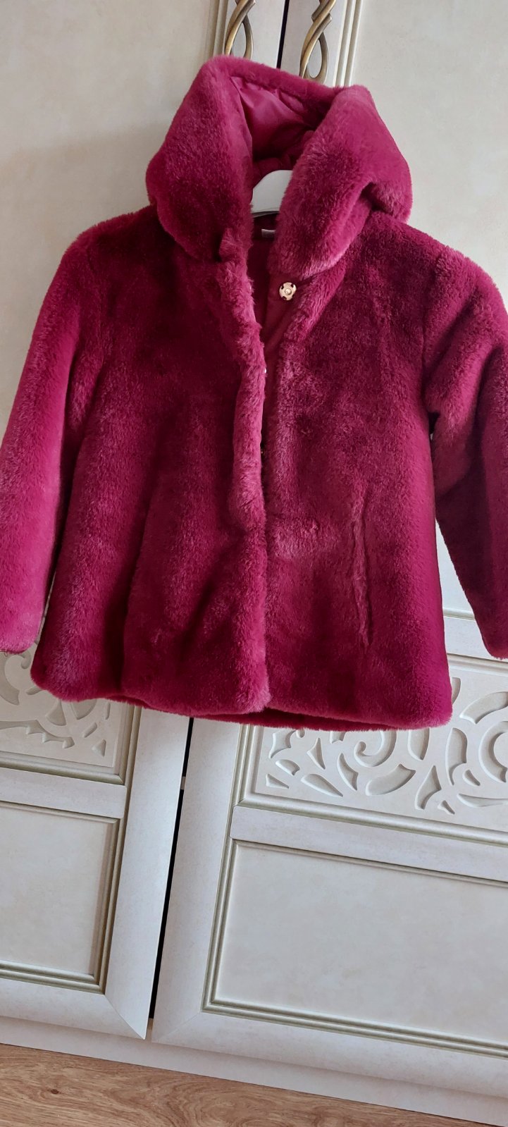 Predám veľmi krásny teplucky kabátik, úplne jemnucke chĺpky, zahreje. Mam k tomu zladenu aj baretku v prípade záujmu. Zapína sa na cvočky,kapucňa je na pevno. V super nepoškodenom stave.