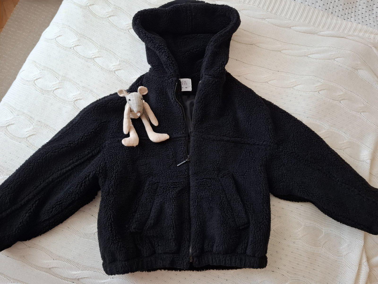 Oversize prechodná bundička, bez poškodenia, je to bunda do pásu. Farba je sýto čierna. Zips sa občas zachytáva do tej "ovečky", možno to stačí len trochu obstrihať. Cena kvôli tomu je symbolická..