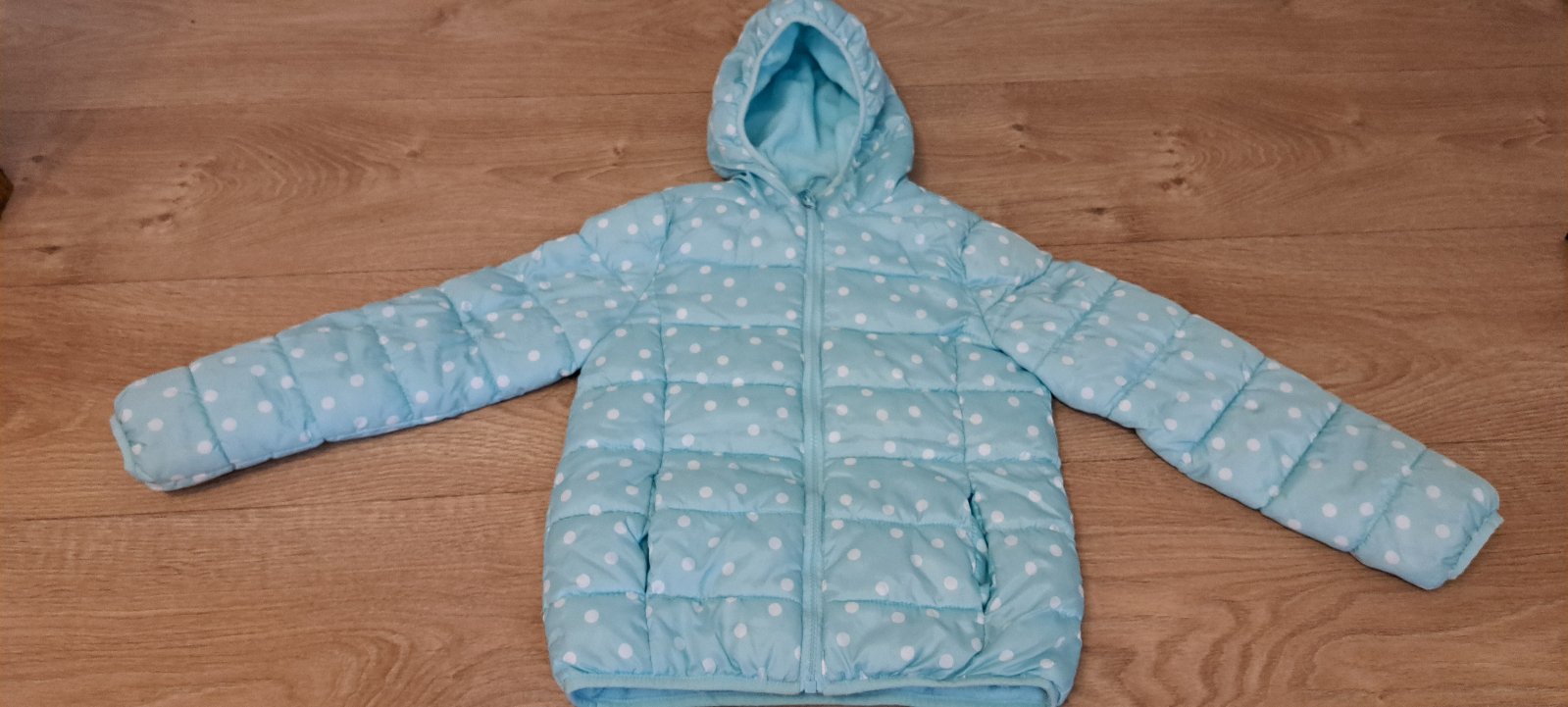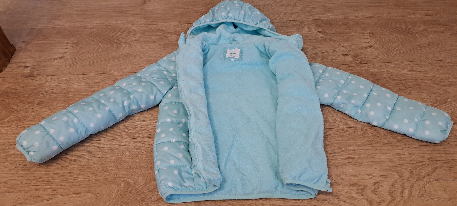Bunda na prechodné obdobie, veľmi príjemná, zvnútra deková ( viď foto) bez poškodenia, nosená na striedačku s inou.