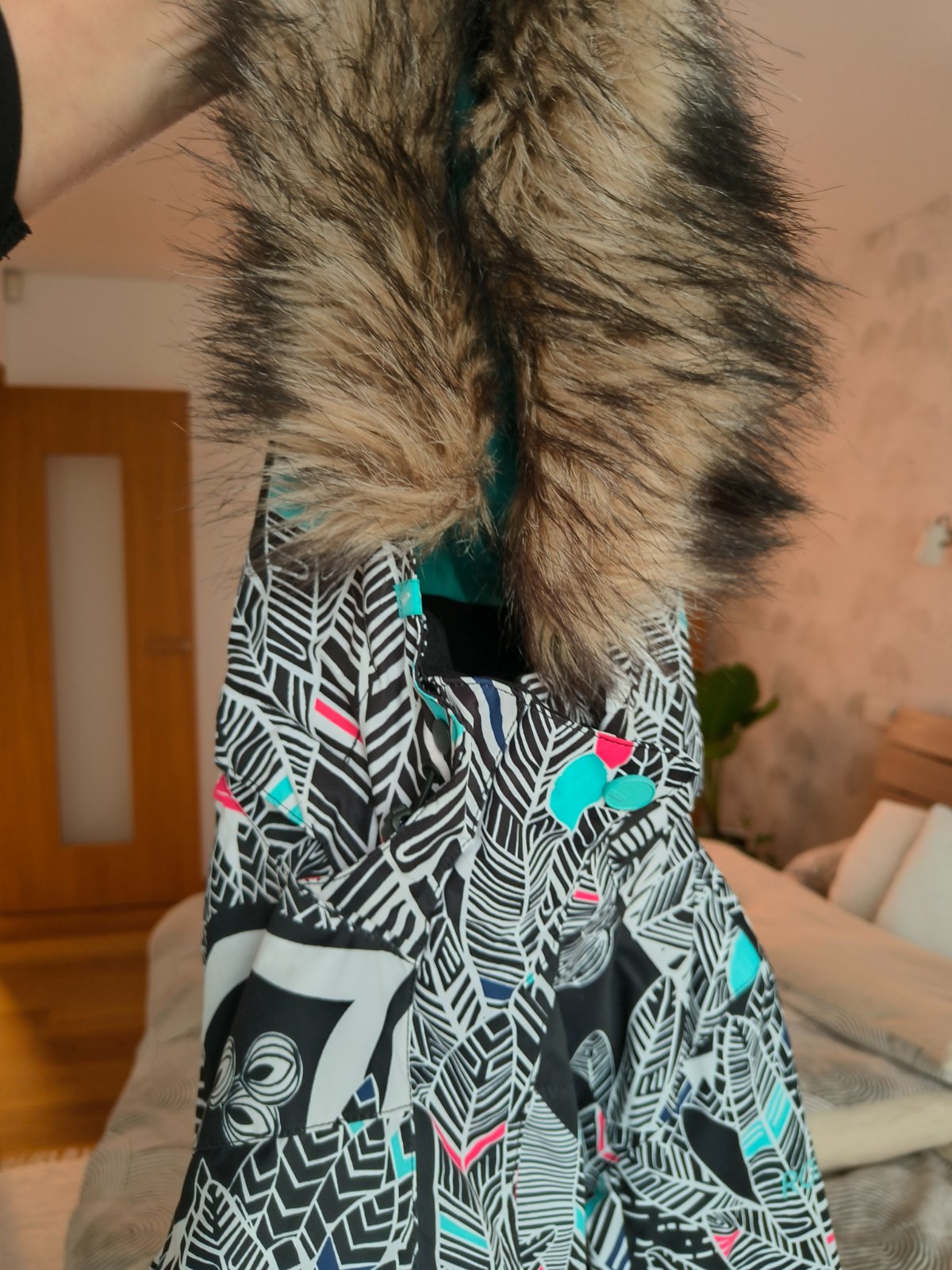 Nová, originál, nepremokavá, snežný pás, vodný stĺpec 10 000 mm. Bunda cez hlavu. Mám k nej aj nohavice. Buď kvietkavé alebo čierne. Kožušinka na kapucni sa dá odopnúť. Cena 139 EUR
