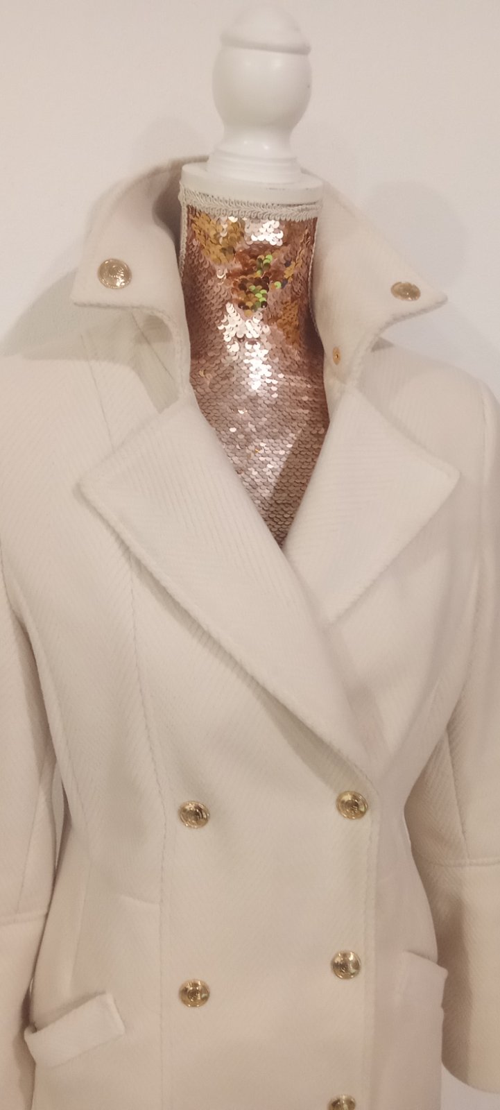 Krásny kabát,zlaté gombiky, veľkosť S sedí aj na M,je krásne vypracovaný,značka Livi