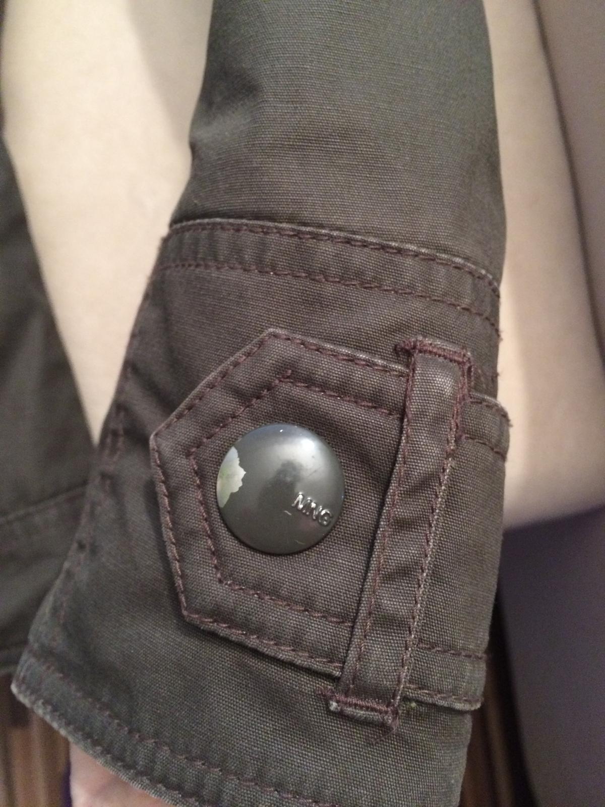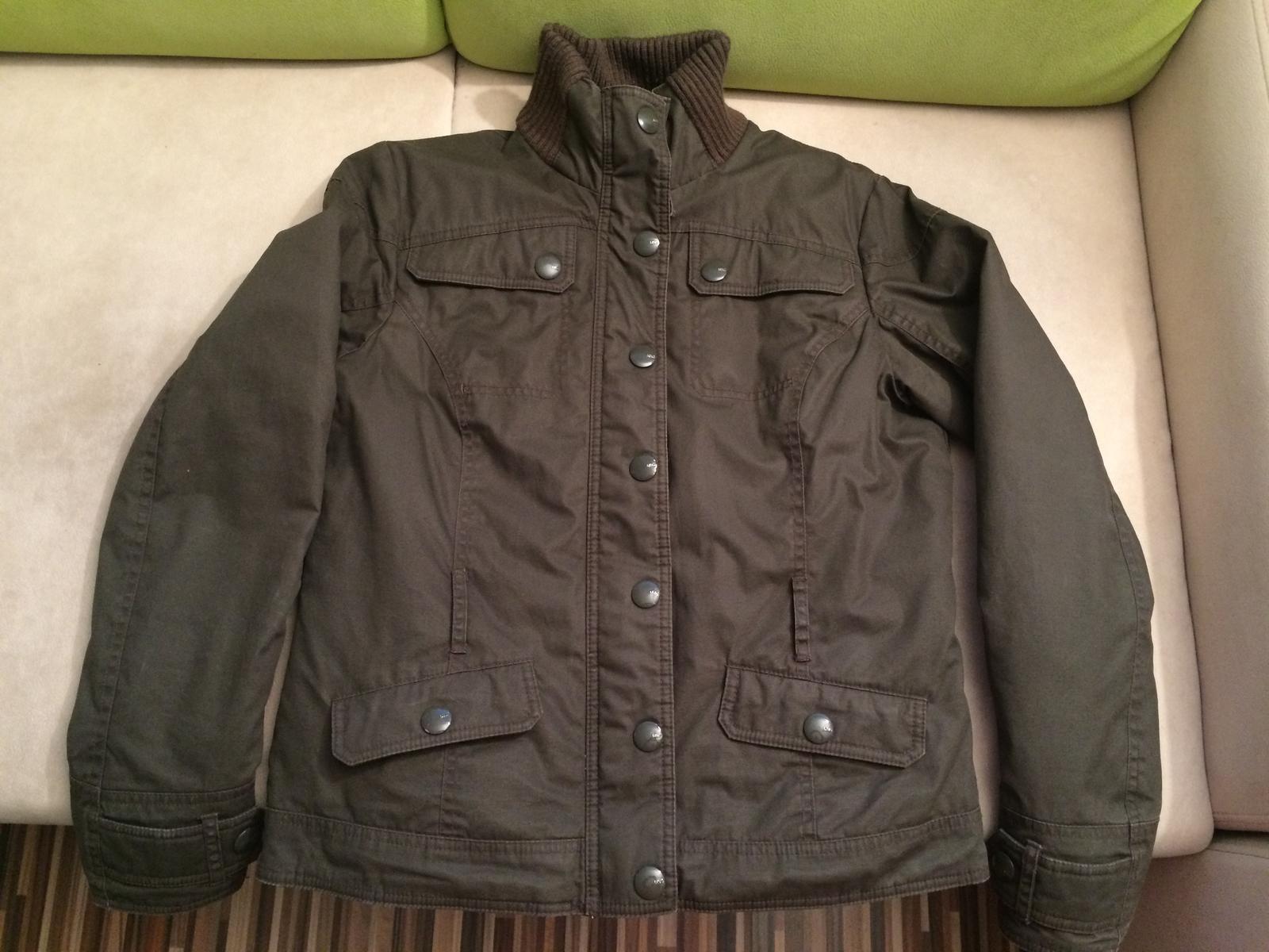 Predám málo nosenú prechodnú bundu s pár vadami (nafotené) - mierne ošúchané gombíky a dierka pod golierom. Bez opasku.