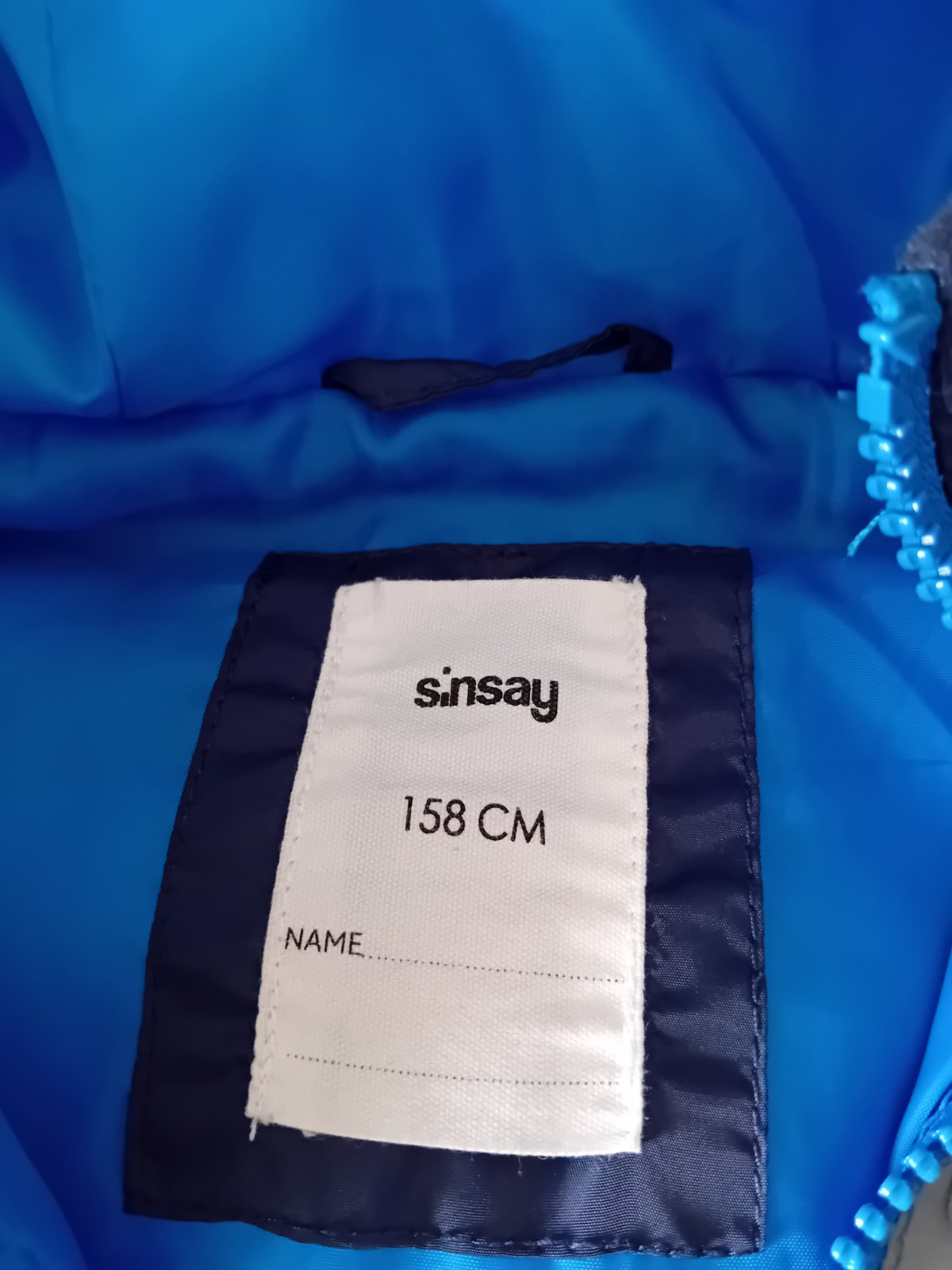Vesta s kapucňou značky Sinsay, veľkosť písaná M - zodpovedá 158. 2 vonkajšie vrecká, 2 vnútorné vrecká. Celková dĺžka 60cm, šírka 46cm.