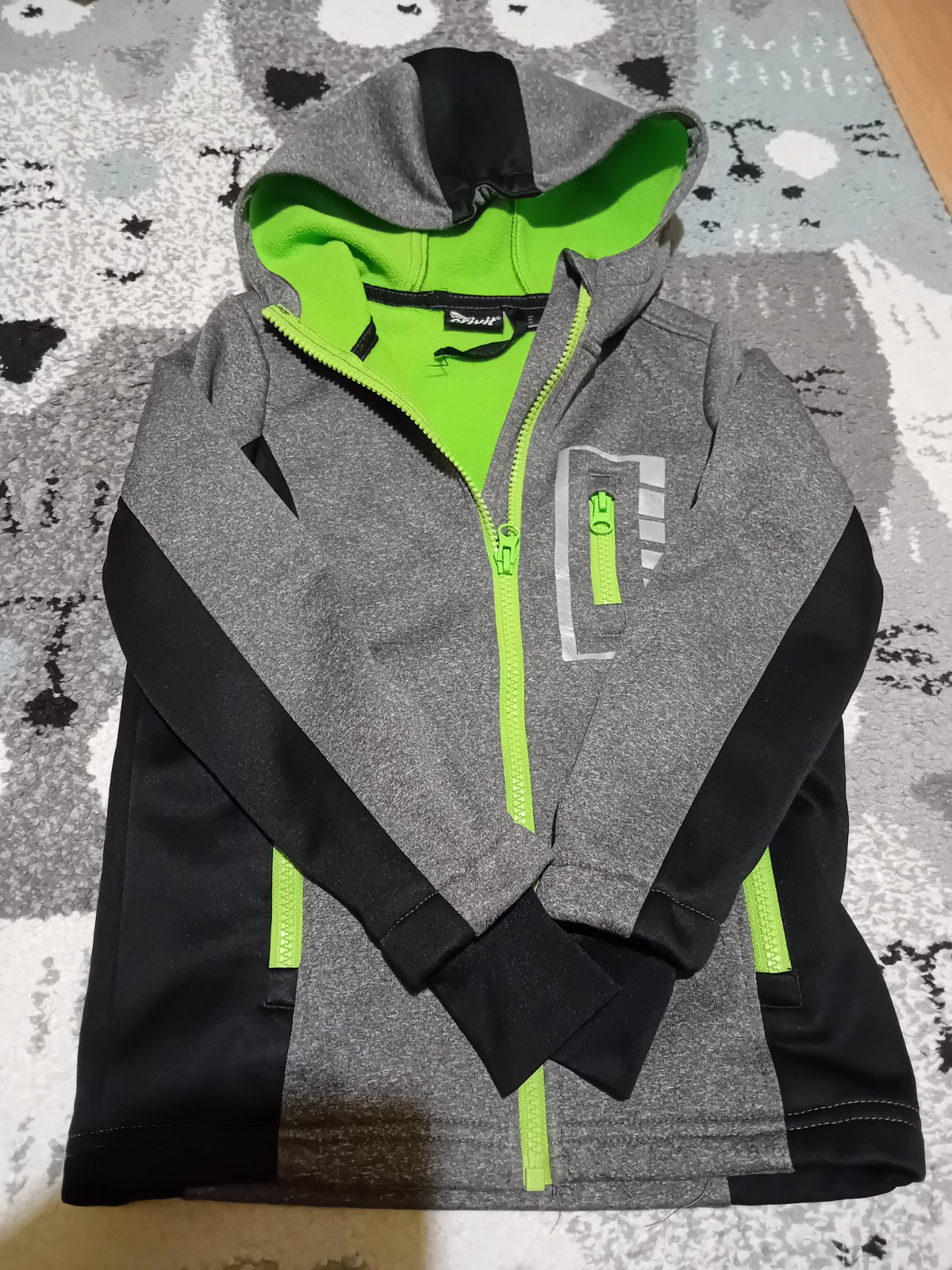 Softshellova bunda v.110/116. Iba pútko vytrhnuté, vid foto, inak ine poškodenie nema, treba si ho prisit.