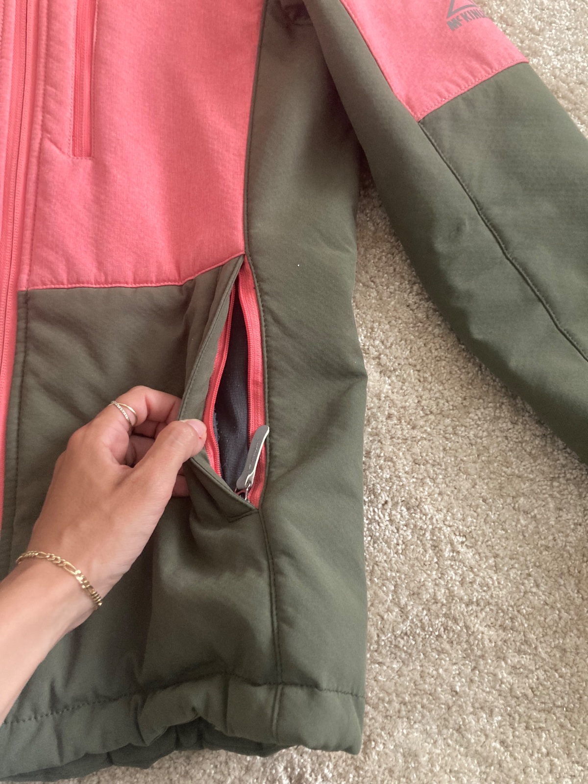 Softshell bunda McKINLEY dary plus,wind protect,vel.164,odolný materiál do dažďa, vetra..je bezchybná,jedine sa odlomilo zo zipsom na vreckách zrejme pri praní,čo vôbec nemá vplyv na kvalitu a funk...