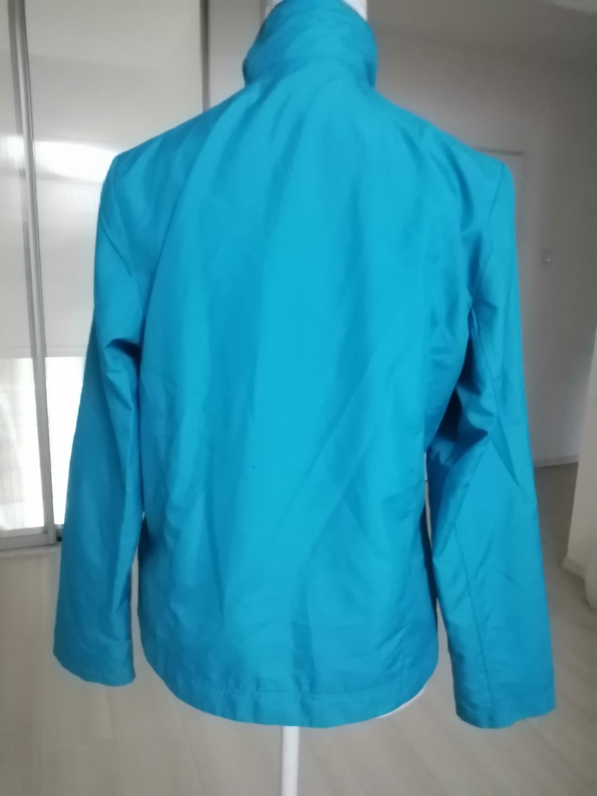 Dámska značková športova bundička, tyrkysova, podsita je tyrkysovou sietovinou, vo veľmi dobrom stave, žiadne známky nosenia, obvod hrudnika je 102 cm, rukavy 63 cm a dĺžka je 59-61 cm