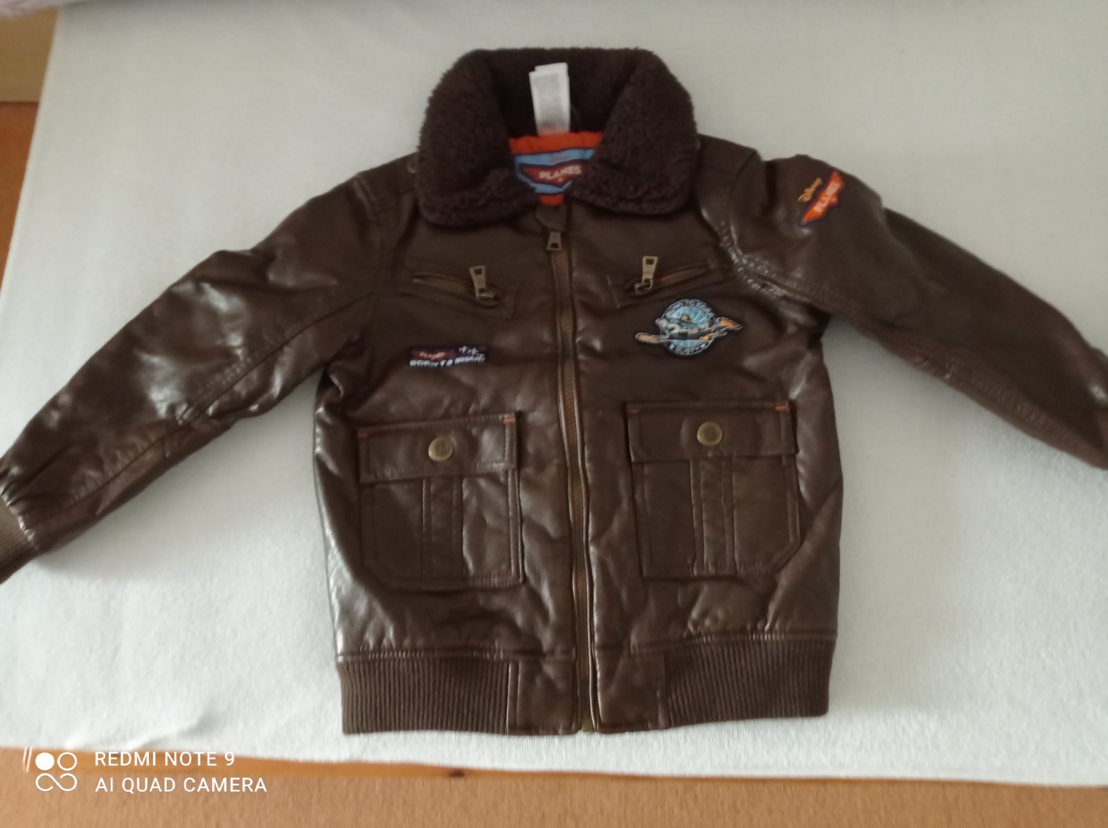 Zvonku šuštiaková, vo vnútri mäkkučká bunda. Napriek tomu, že ju syn rád nosil, nevidieť žiadne poškodenie. Veľkosť písaná 5/6 rokov. Na patentoch miernučné žmolky.