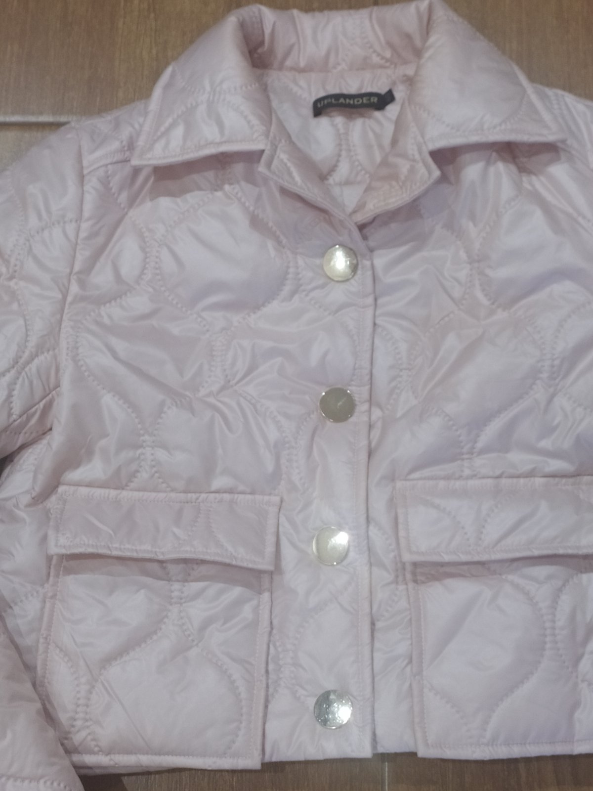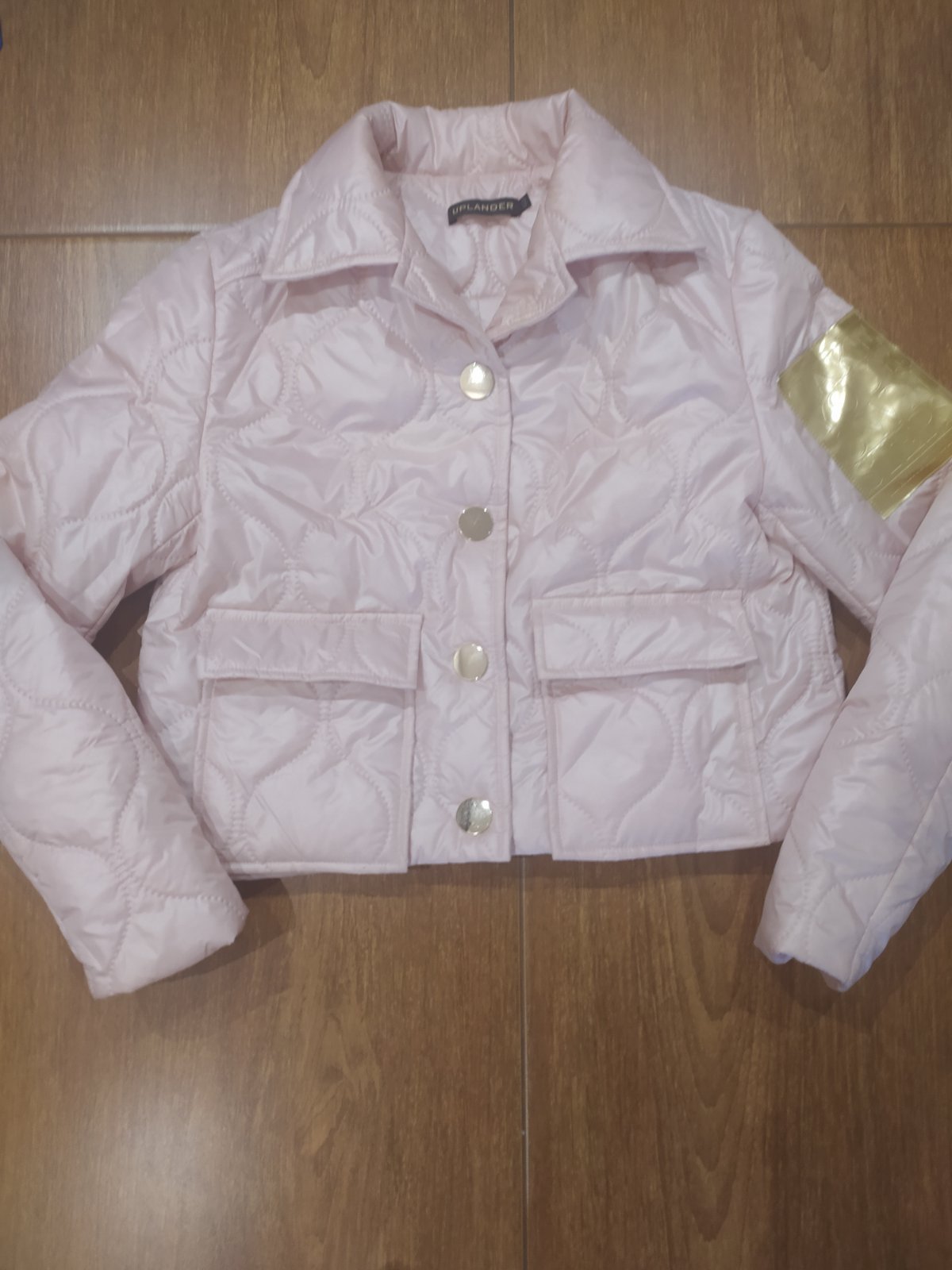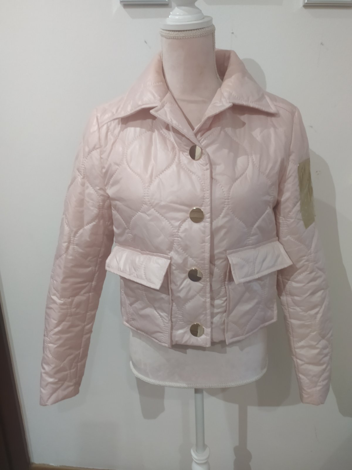 Krásna štýlová bunda ,na prechodné obdobie,top stav.Vel uvedená 40 ,je menšia .Zapínanie na veľké zlaté patenty,vpredu funkčné vrecká.