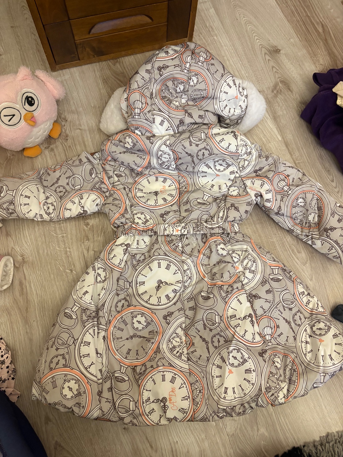 Výborný stav, bez poškodenia, akurát futro sa zbilo od prania...predajná cena bola okolo 40€ Veľkosť na 4-5 rokov