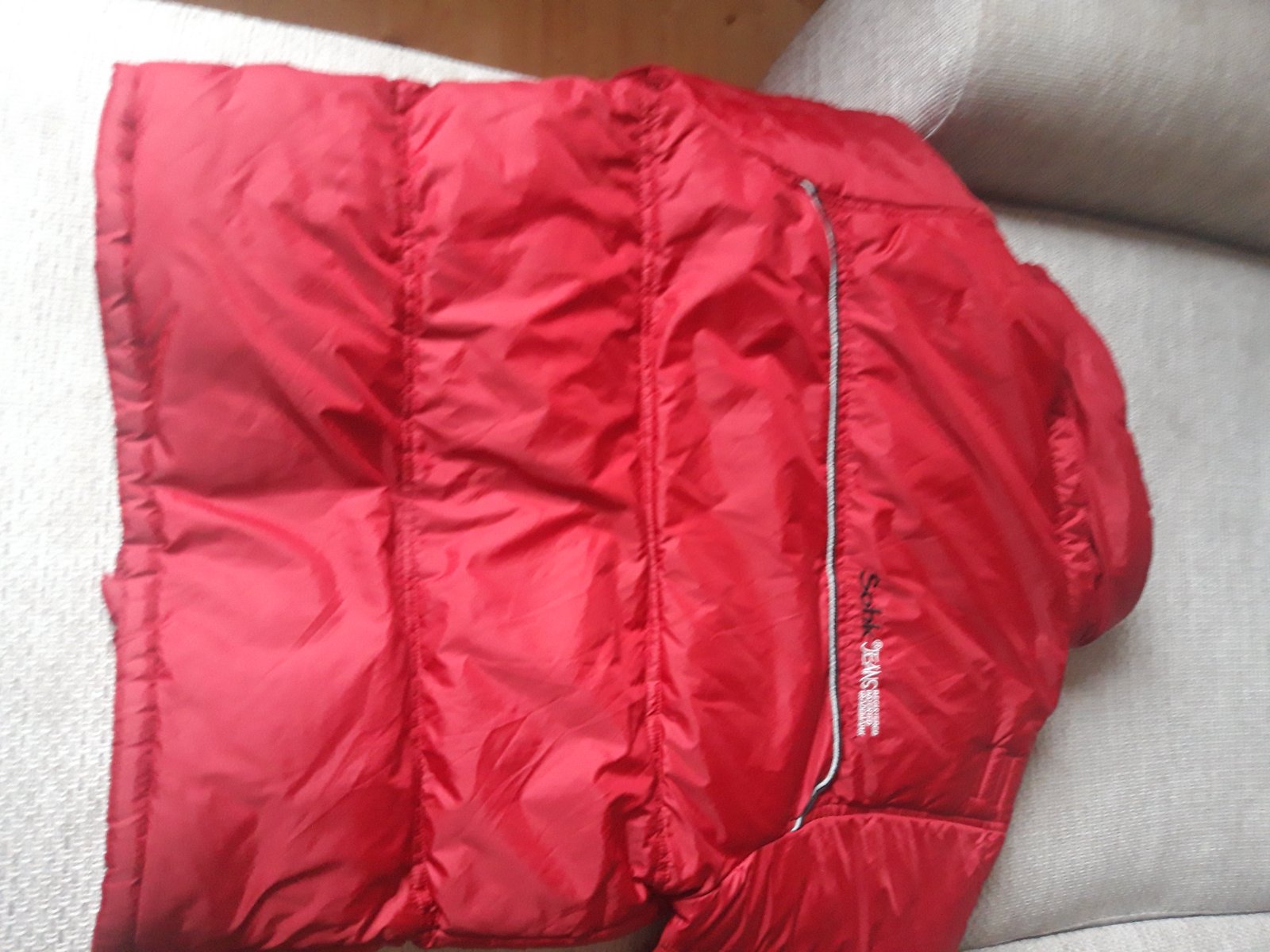 Viac nosená, hrubá vetrovka ,nepotrhaná, zipsy funkčné, chýba kapucňa, na rukávoch viditeľné známky nosenia (guma je natiahnutá-viď posledné foto), farba je v skutočnosti tmavšia, stále nositeľná, v dobrom stave až na tie rukávy, na donosenie alebo pre nenáročnú mamičku