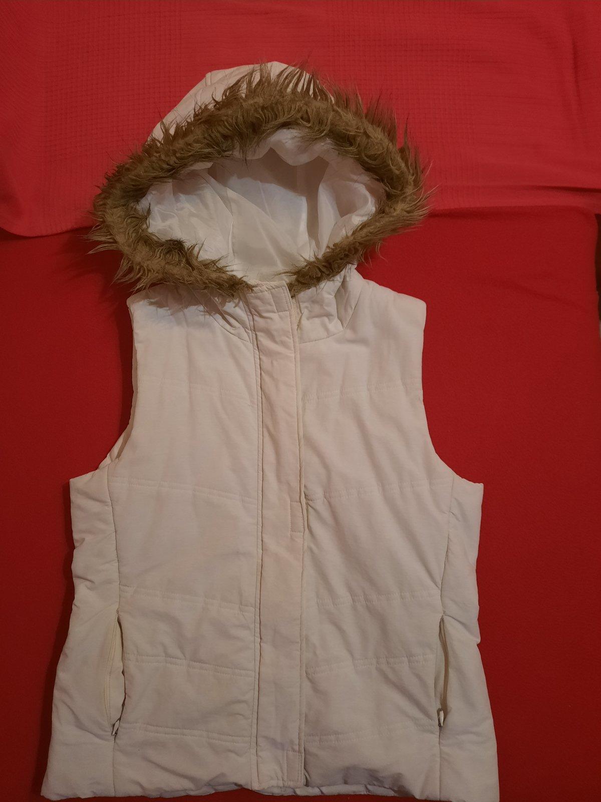 Pekná vesta s kapucňou. Vhodná na jar, jeseň, ale aj miernu zimu. Je stredne hrubá. Zapína sa na zips+suchý zips. Vačky sa tiež dajú zazipsovať.