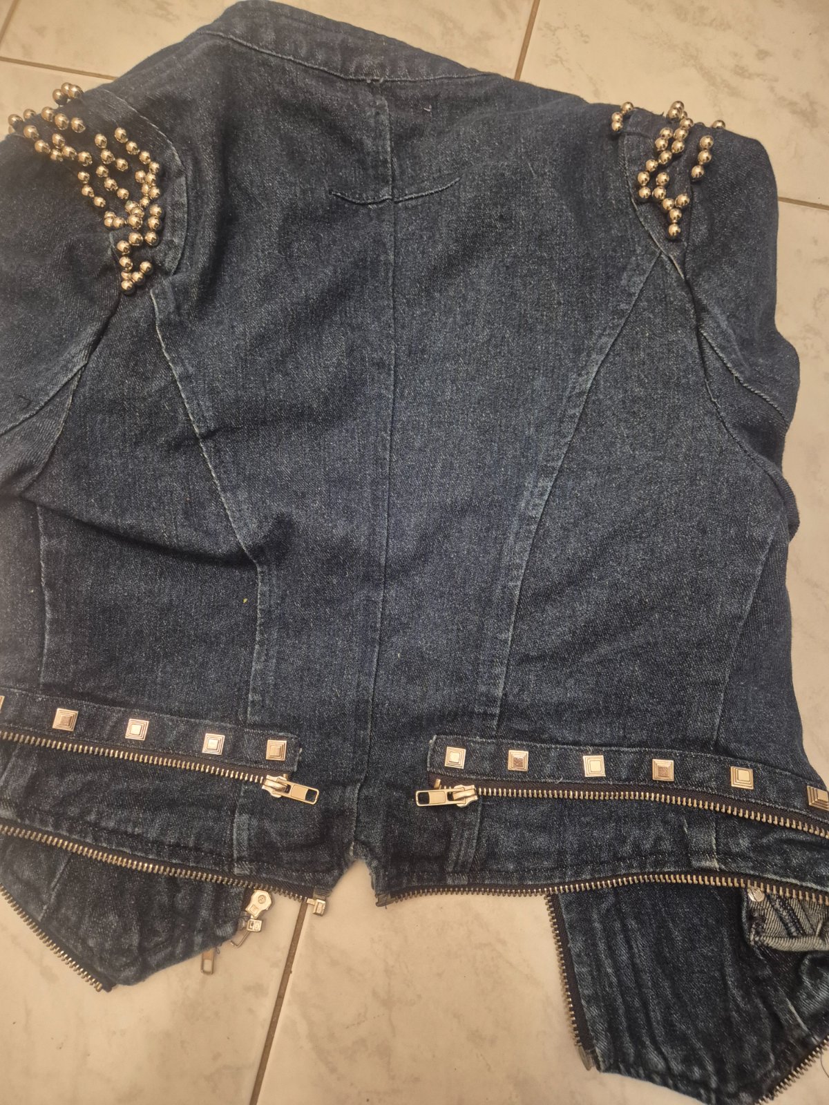 Predám krásnu modrú riflovú bundu zo zipsami a perličkami vel.S,top stav, značka Rehab,cena 13€