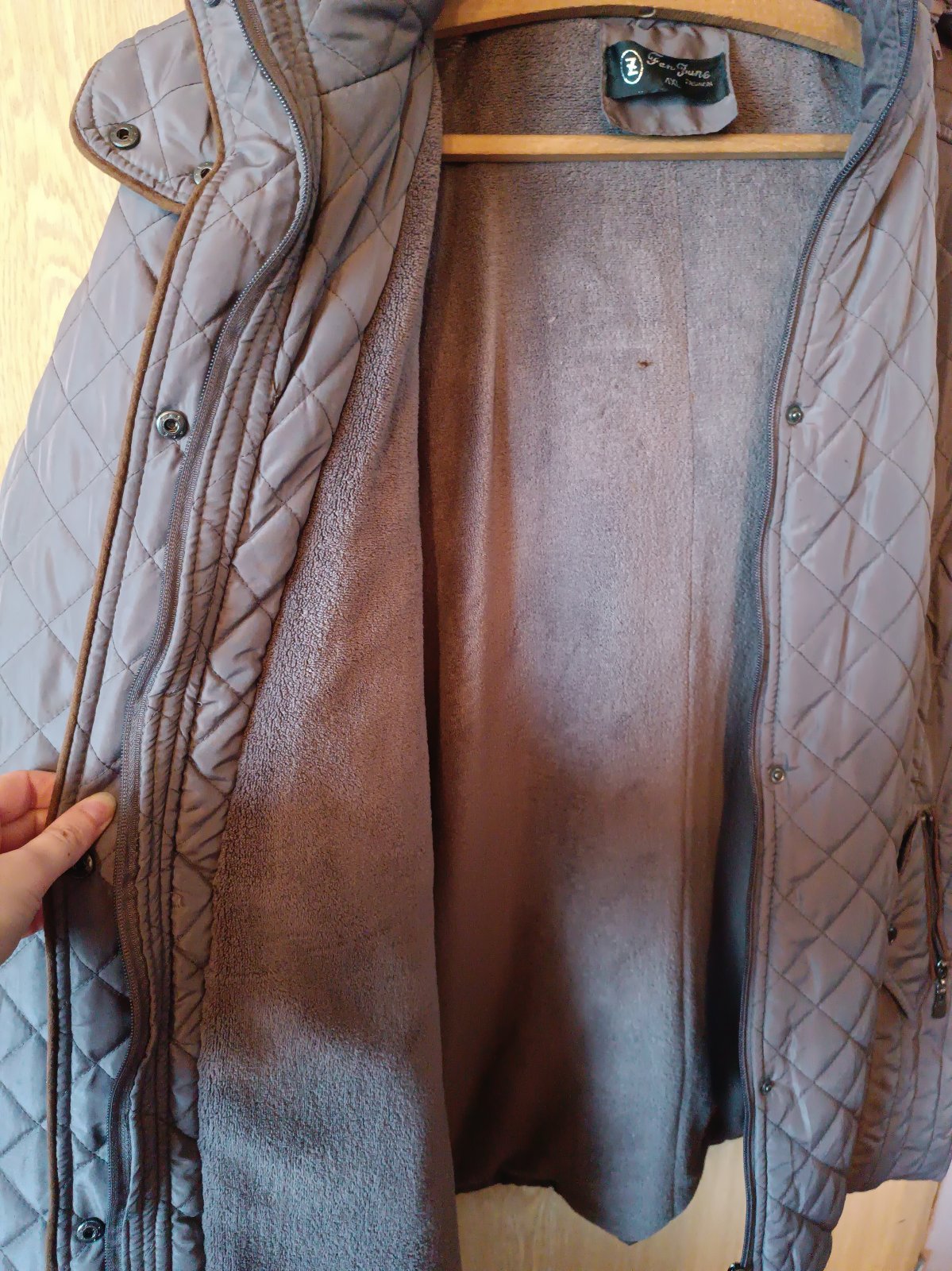 Dámska zateplená bunda, vnútri má bundičku, kapucňa je na zips, značka Fan June Fashion, veľkosť 4XL, cena 20,00 €.