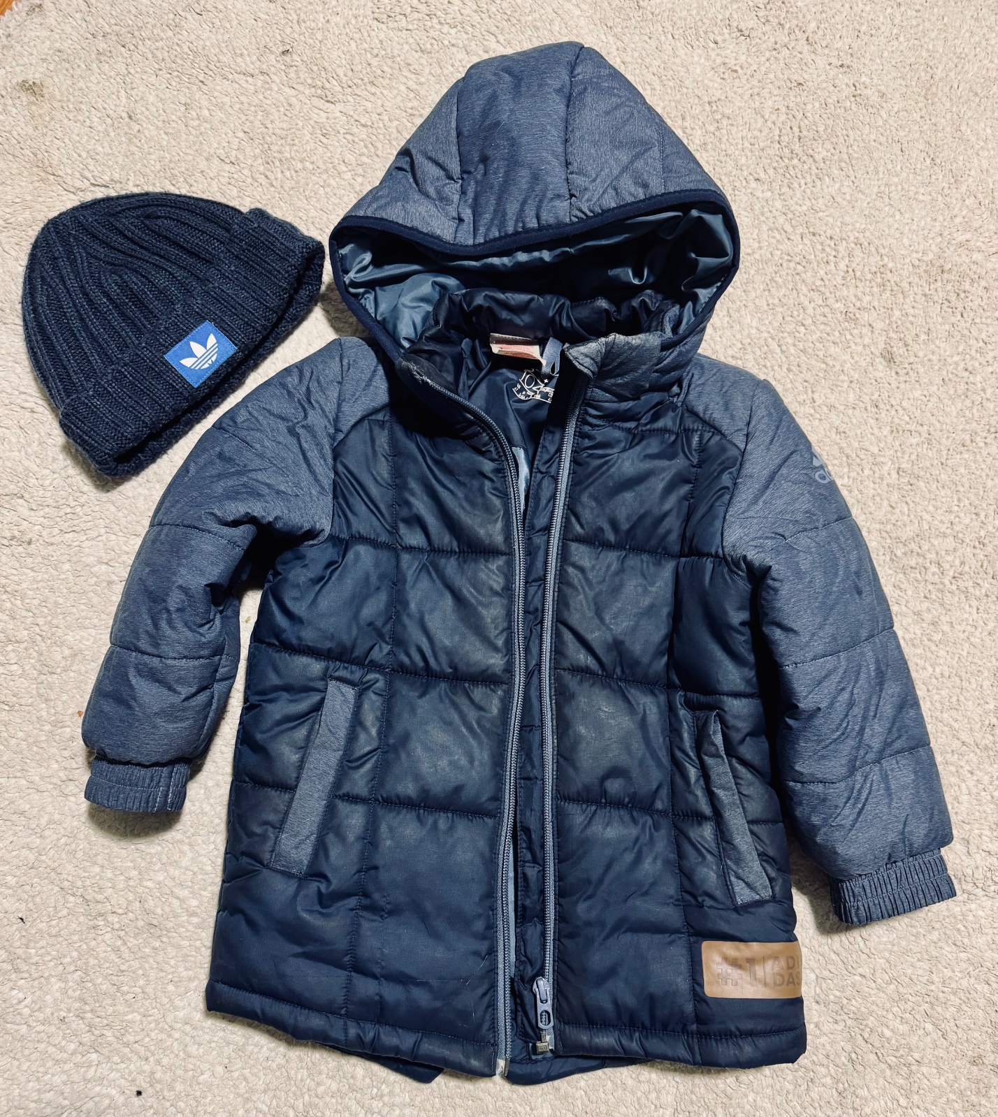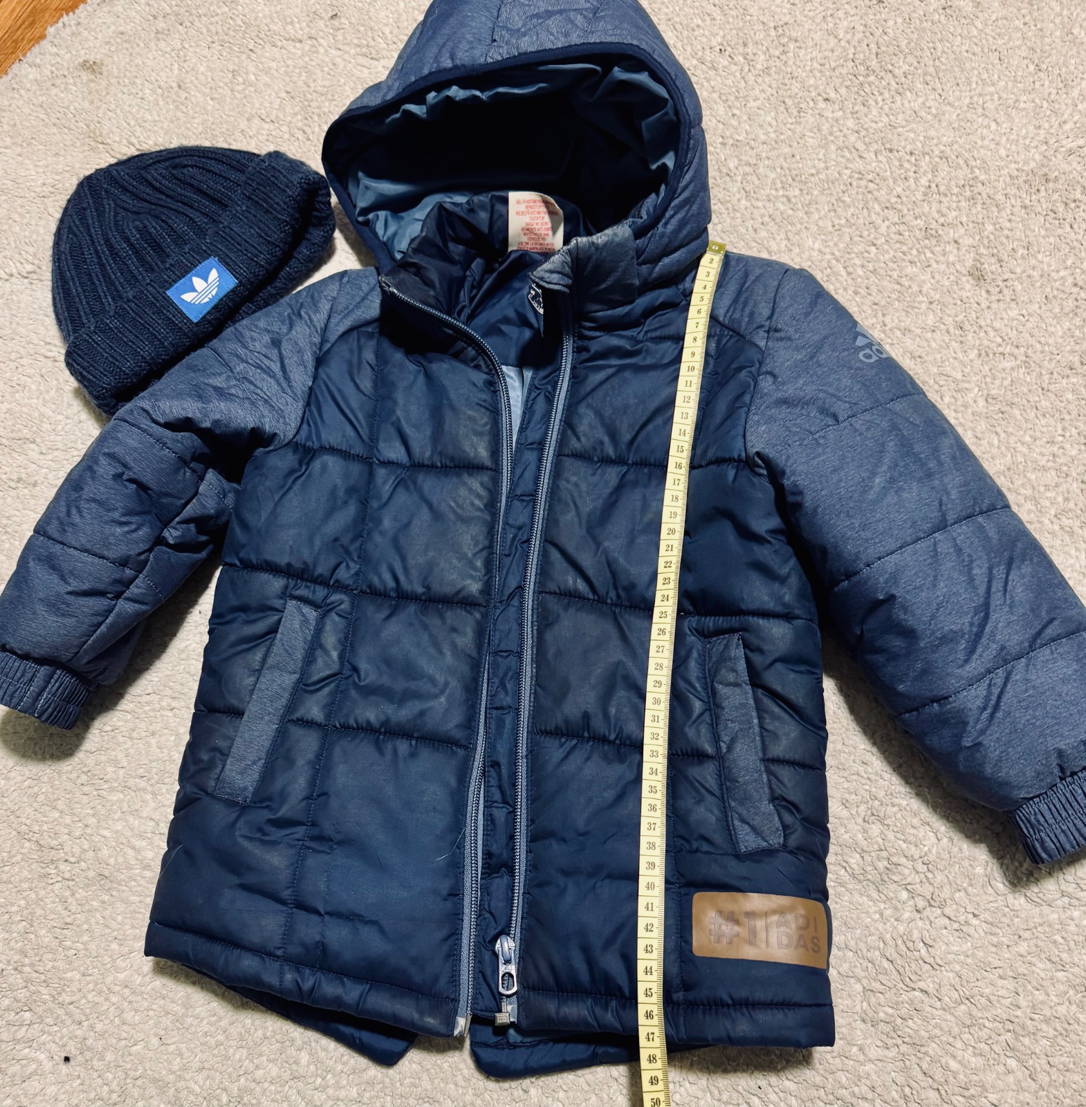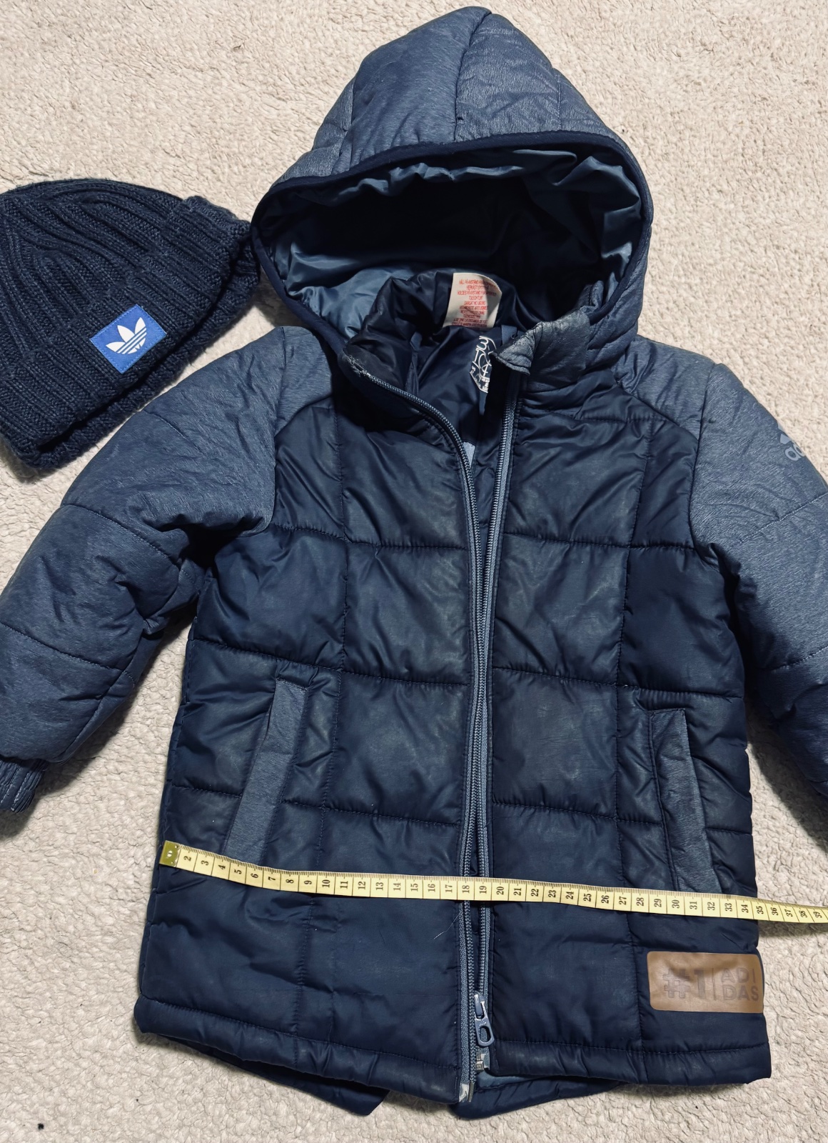 Krásna a elegantna adidas bunda s adidas čiapkou. Váš maly v tomto bude ako malý fashionista. Šetrne nosené bez chýb. Kvalitné, teplé, nepremokavé, neprefukavé s pár reflexivnymi prvkami. Kapucňa odnimateľná. Originalna hodnota okolo 65 eur.