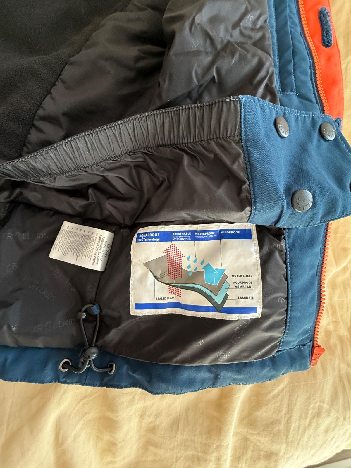 Lyžiarska bunda. Membrána Aquaproof. Pas proti snehu. Manžety proti snehu na rukávoch. Zips funkčný. Odopinatelna kapucňa. Na velkost 128 cnm...avšak môže byť aj viac nakoľko lyžiarsky strih ma dlhšie rukávy.
