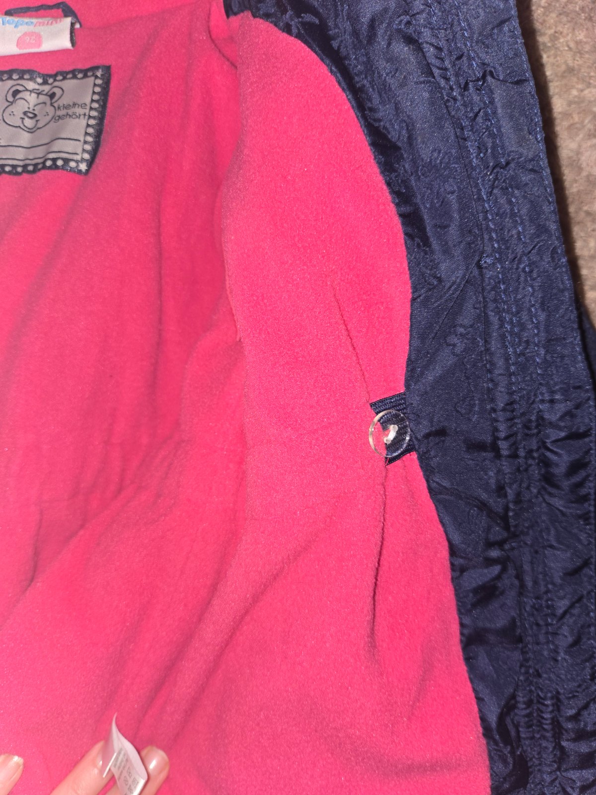 tepla bundicka-kabatik. bez znamok nosenia. plno vreciek a detailov... dlzka vpredu50cm, obvod 2*45cm, rukav od krku 43cm...