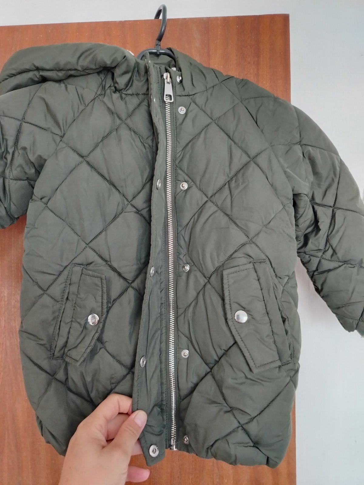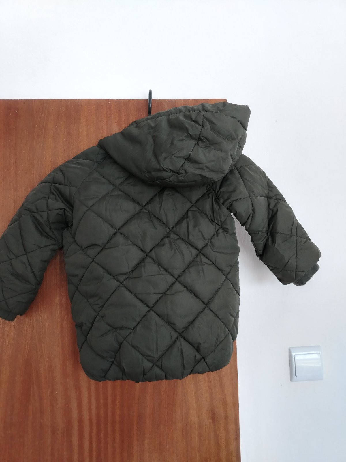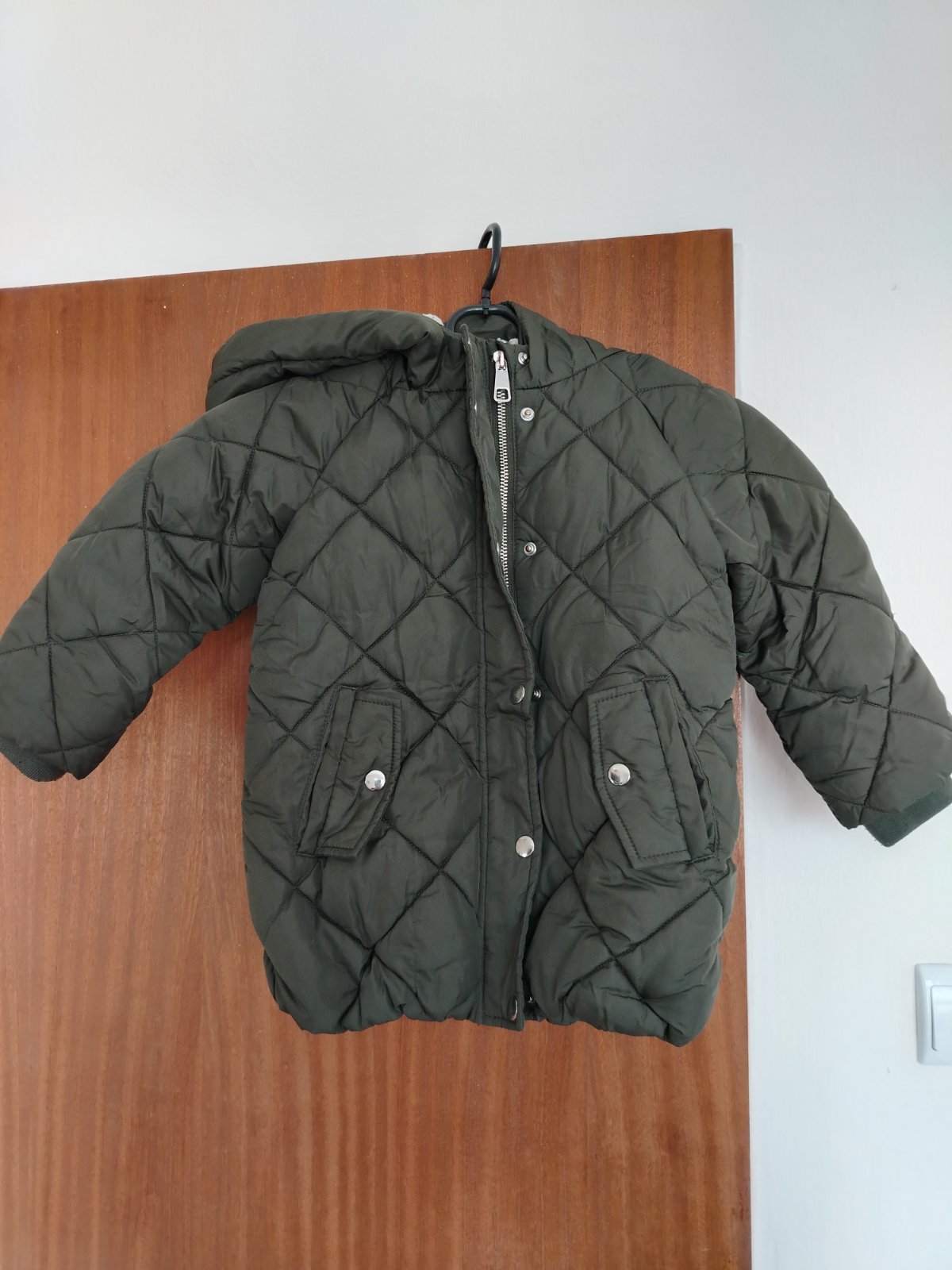 Nosenie vidno na zatepleni, inak bez poškodení. Veľkosť písaná 3-4 roky, rozmery :šírka 38cm,dĺžka 49cm,rukav od krku 39cm+2cm patent