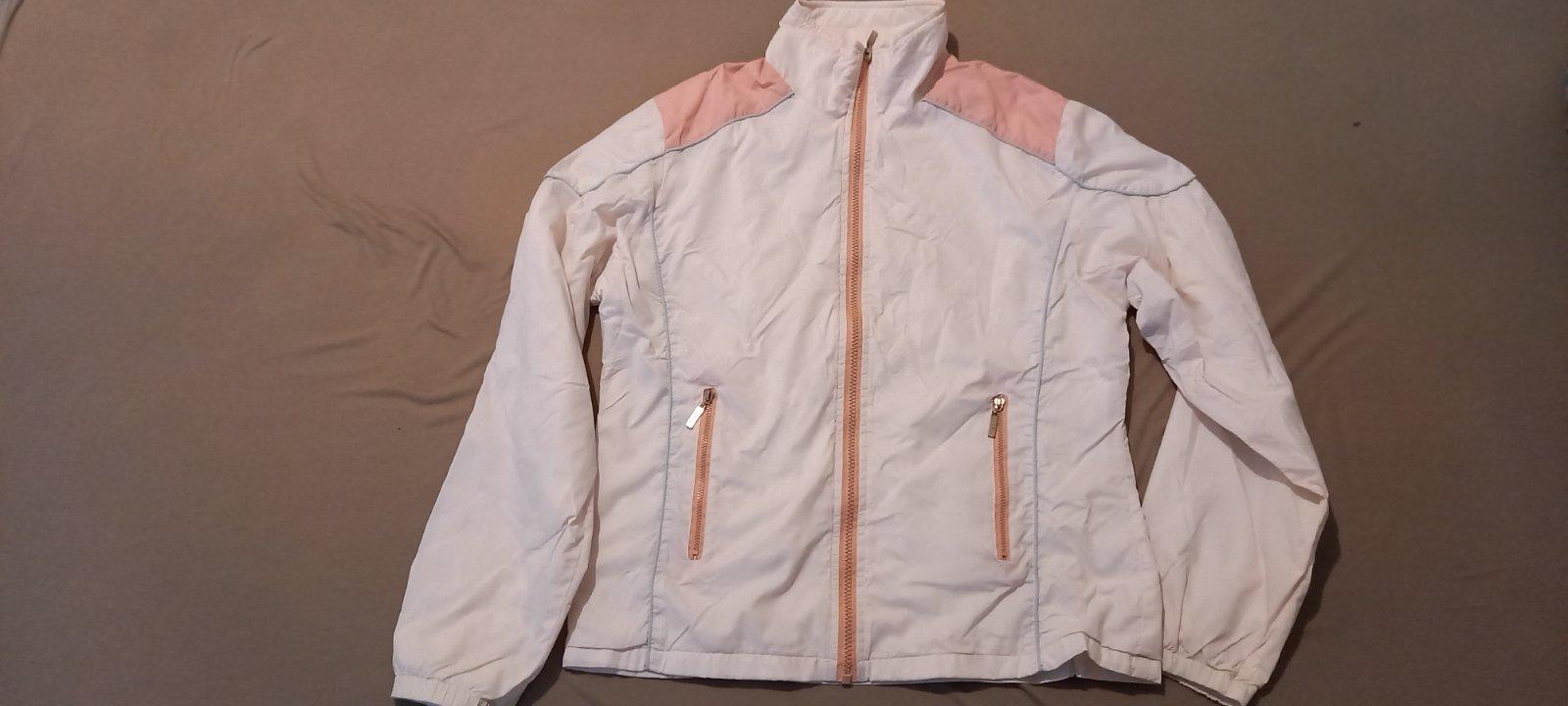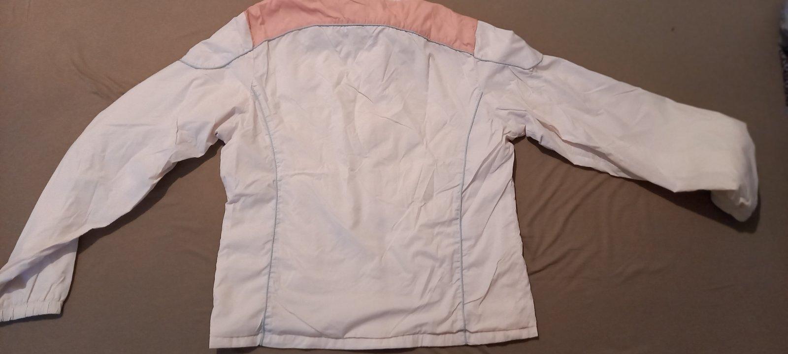 Prechodna vetrovka velkost L ,dlha je bez kapucni 76cm vzadu avpredu ma 69cm ,rukav od krku 78cm a cez prsia ma 120cm ,bez poskodenia ako nova