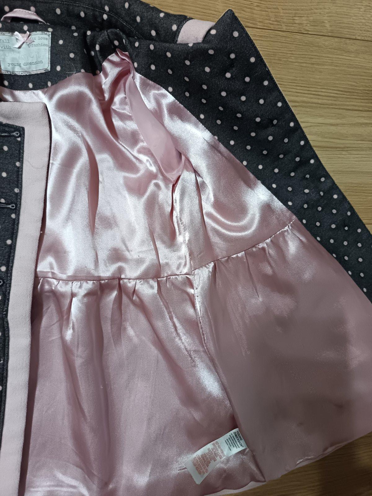 Bez poškodenia, rozmery na fotkách. Farba je šedá s ružovým lemom a bodkami.